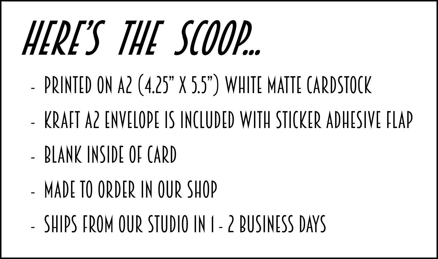 • Size: Printed on A2 (4.25” x 5.5”) White Matte Cardstock