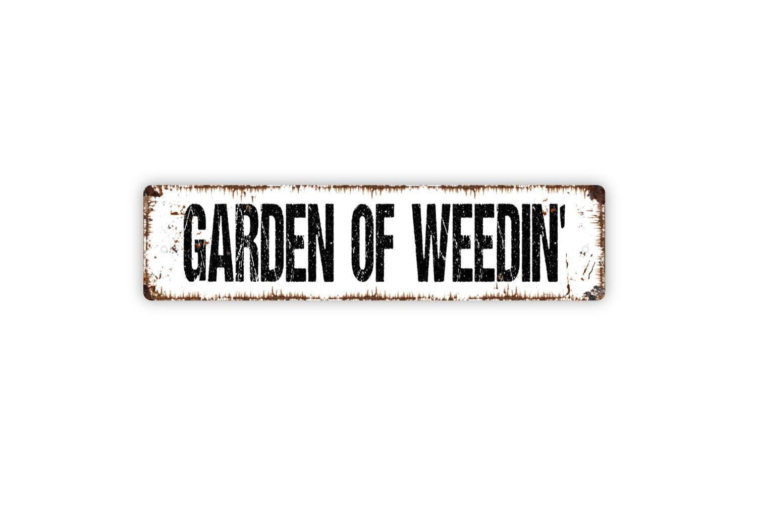 Garden Of Weedin’ Sign – Funny Gardening Wall Decor – Rustic Farmhouse Yard Patio Flower Bed Garden Sign – Metal Sign or Sticker