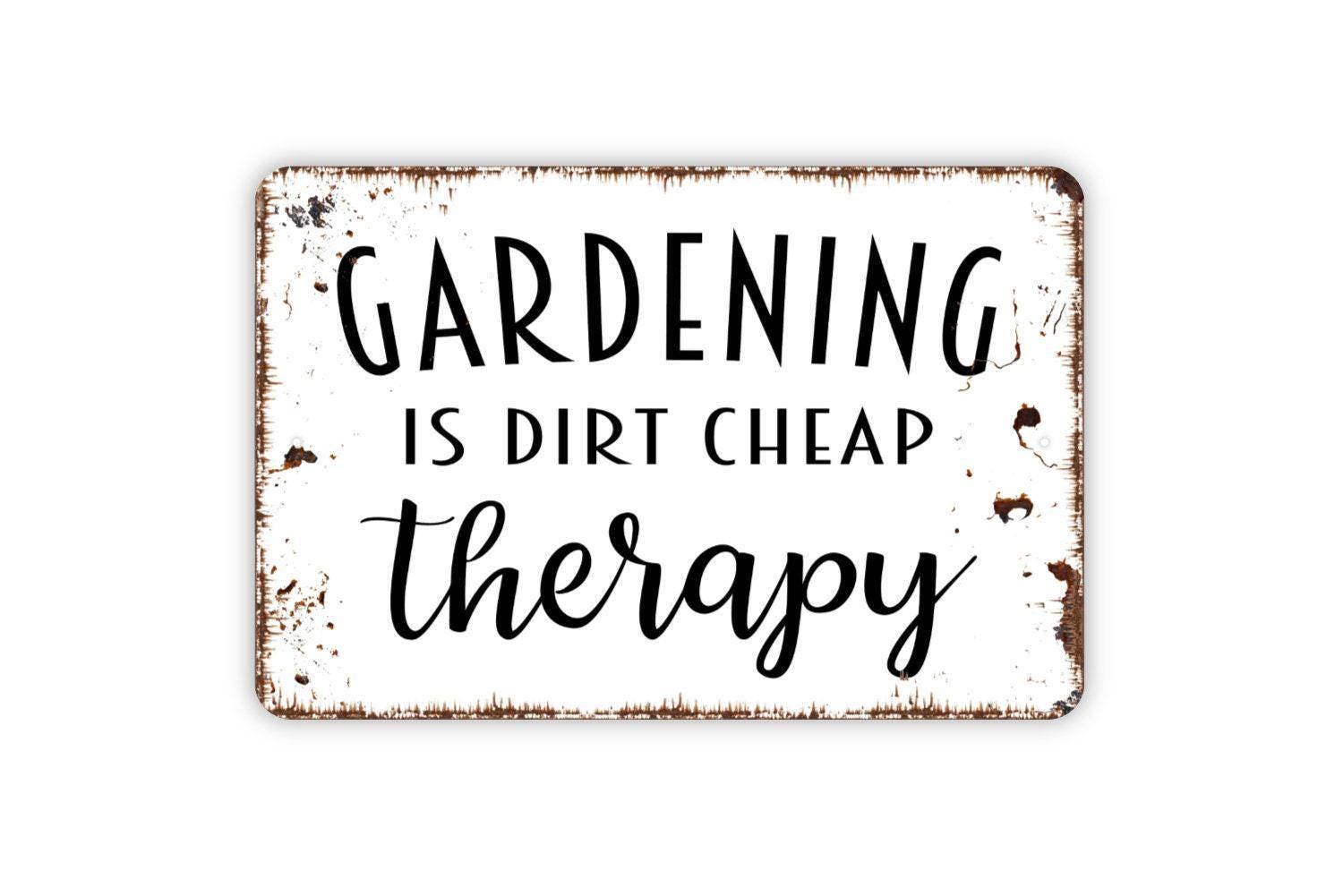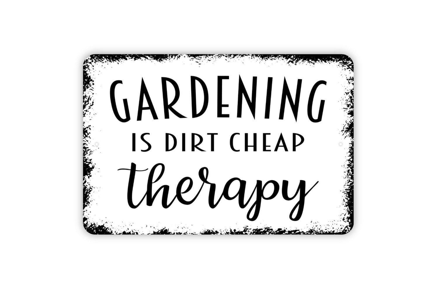 Gardening Is Dirt Cheap Therapy Sign - Gardener Garden Plant Grow Farmhouse Modern Wall Art Metal Sign - Indoor Or Outdoor