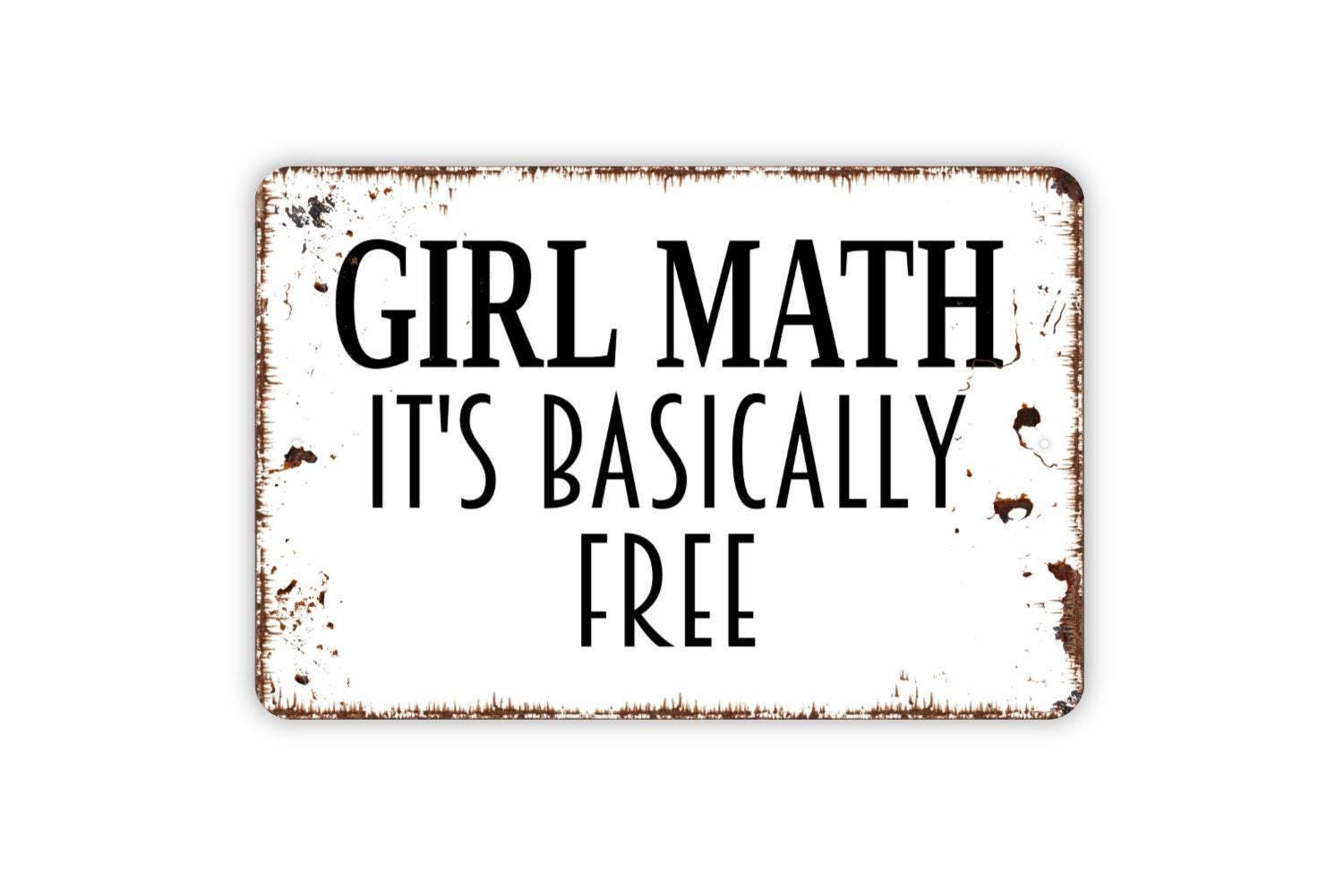 Girl Math It's Basically Free Sign Metal or Vinyl Sticker | Funny Shopping Sign | Rustic Wall Decor | Retail Humor Art | Gift for Her