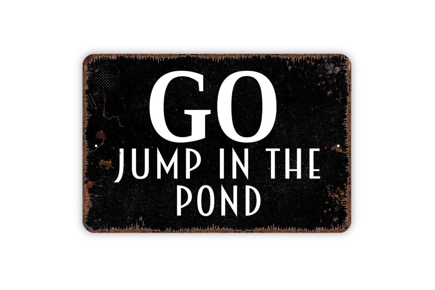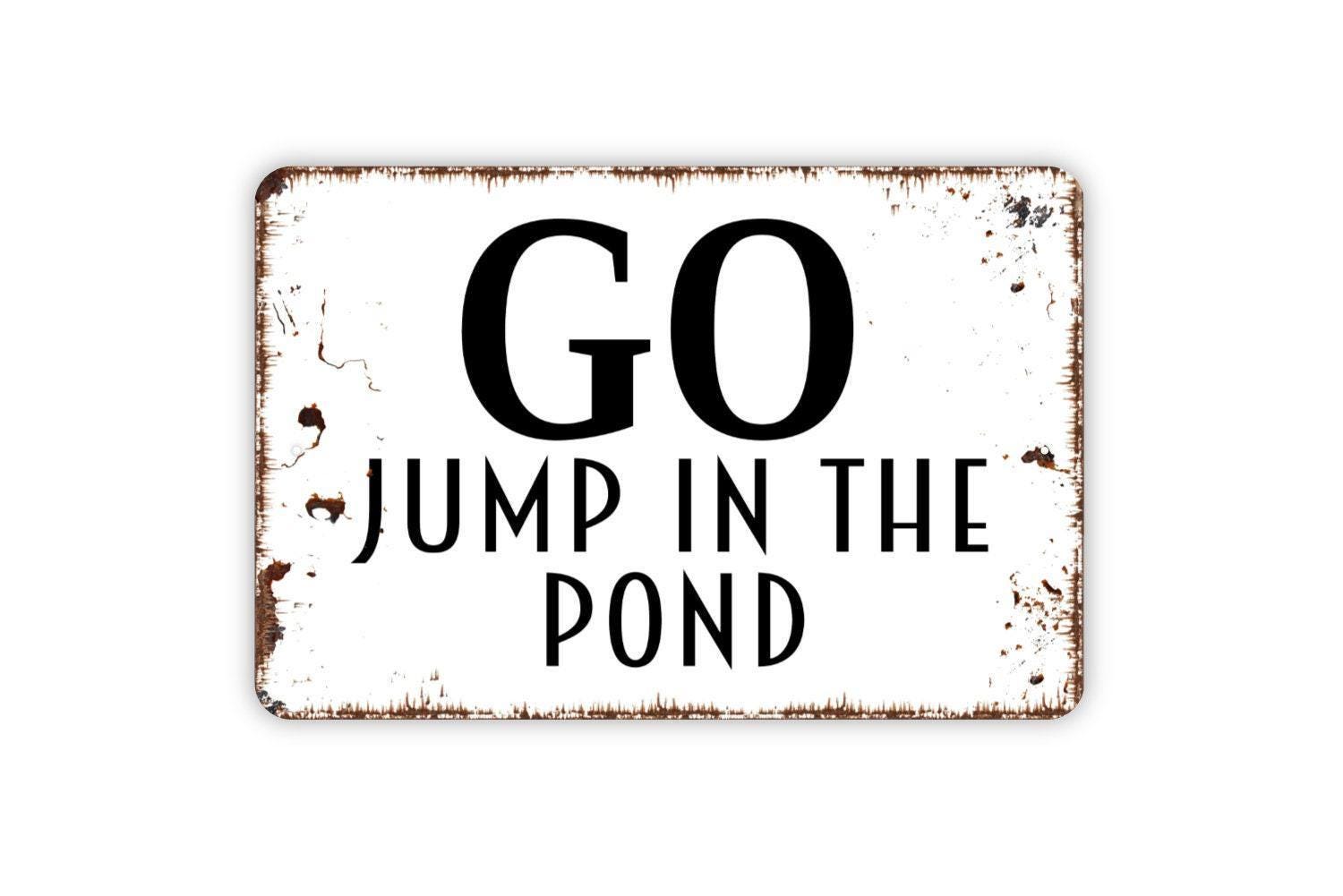 Go Jump In The Pond Sign - Farm Ranch Fishing Pond Metal Wall Art - Indoor or Outdoor