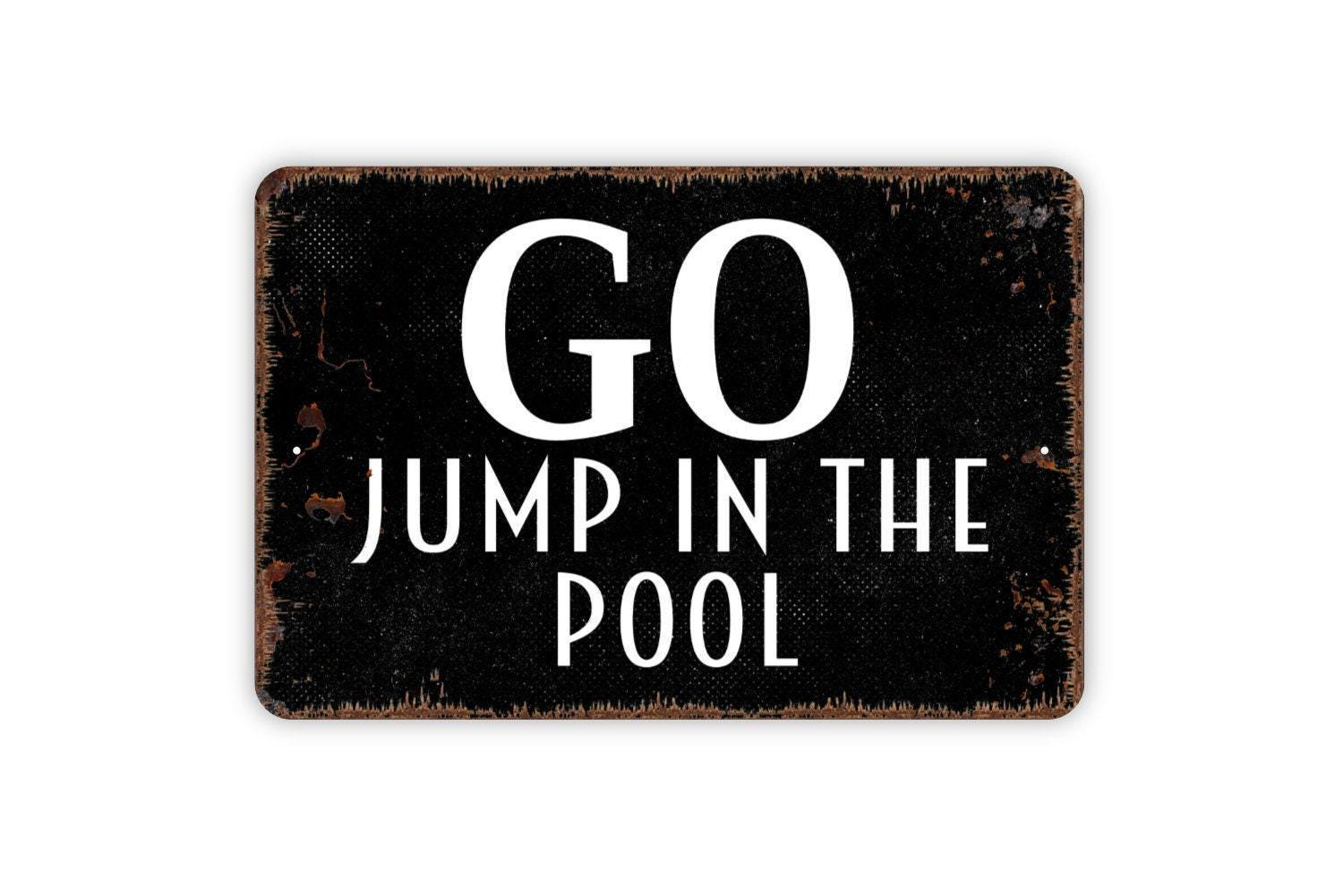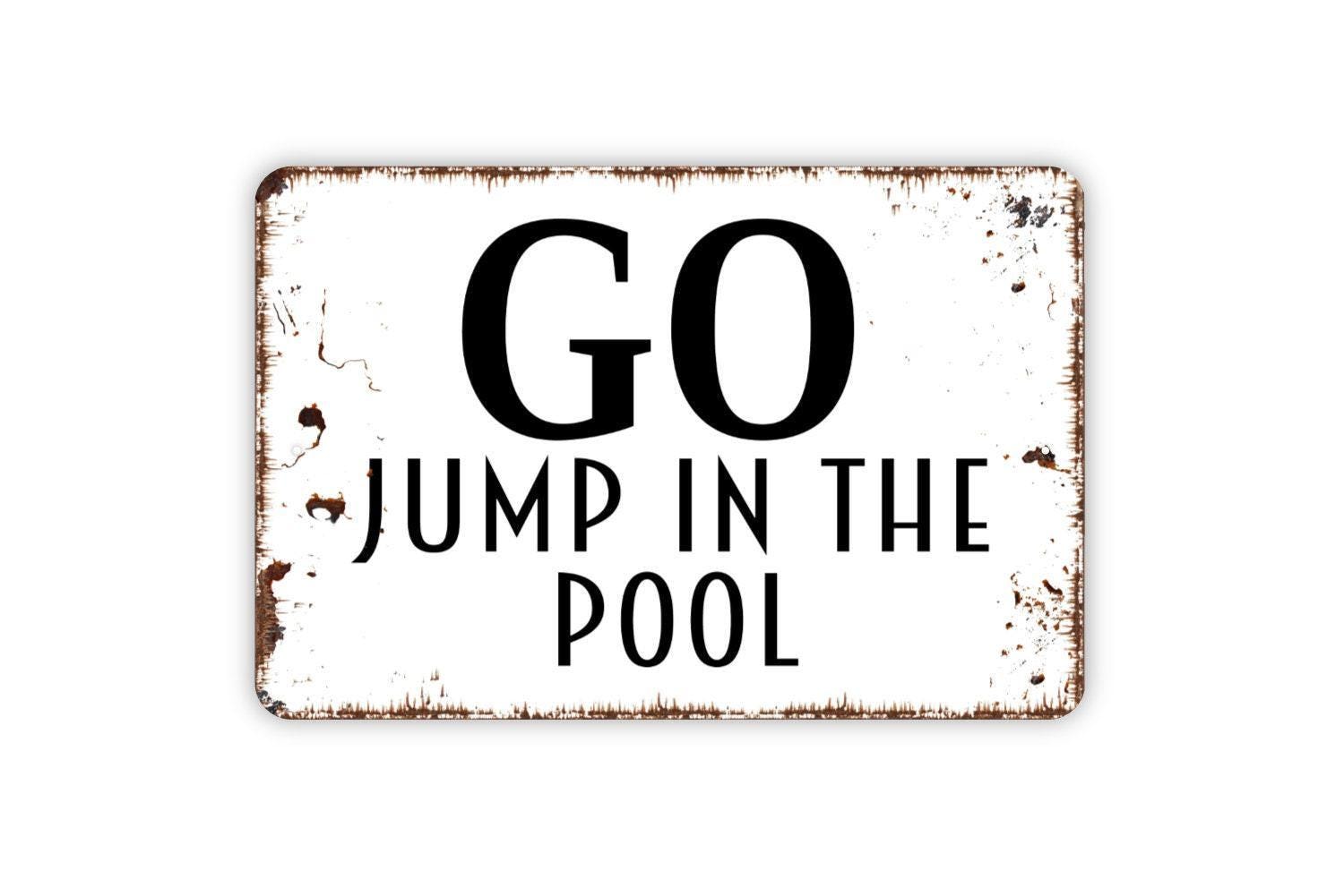 Go Jump In The Pool Sign - Swimming Pool Metal Wall Art - Indoor or Outdoor