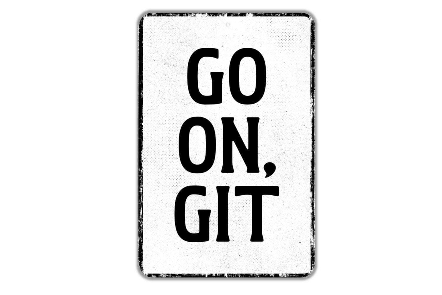 Go On Git Sign Funny Porch Sign | Rustic Farmhouse Front Door Sign | Outdoor Metal Sign or Vinyl Sticker for Yard Home or Entryway