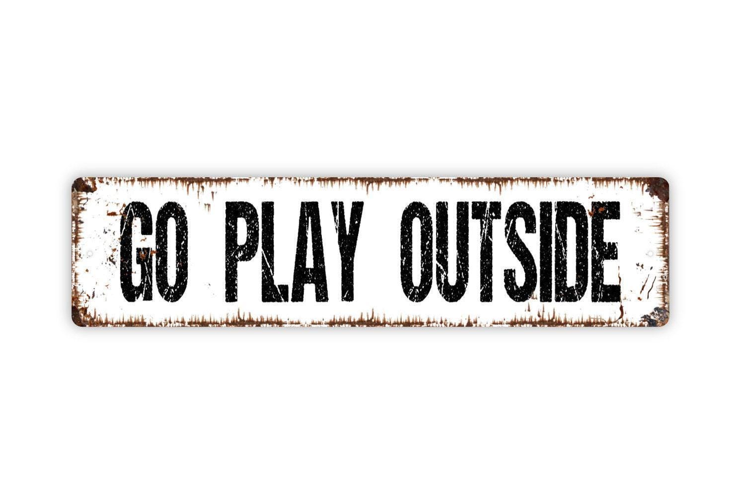 Go Play Outside Sign, Metal Sign, Farmhouse Style Decor Vinyl Sticker Or Street Sign or Door Name Plate Plaque