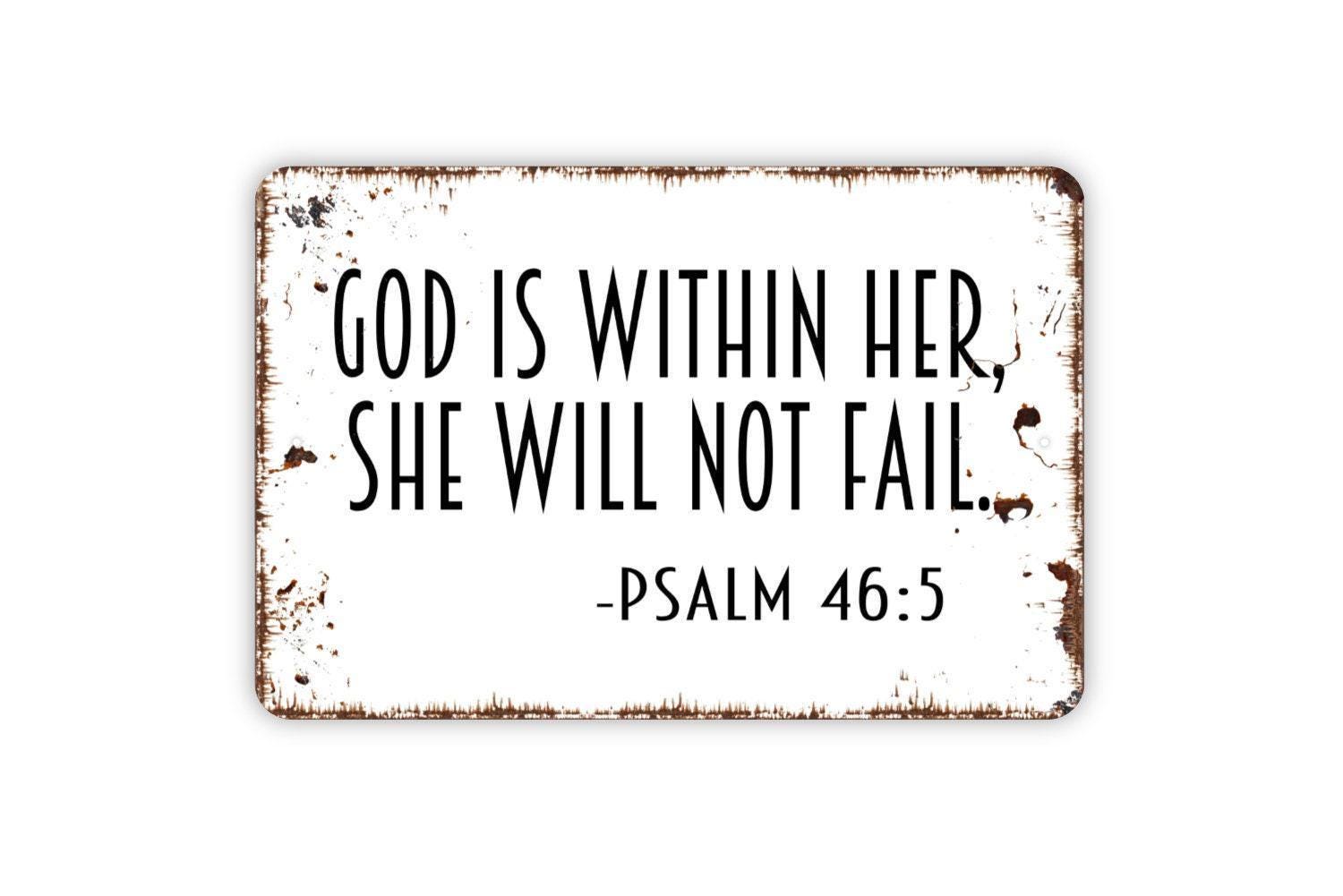 God Is Within Her She Will Not Fail Psalms 46 5 Sign - Christian Bible Verse Metal Indoor or Outdoor Wall Art