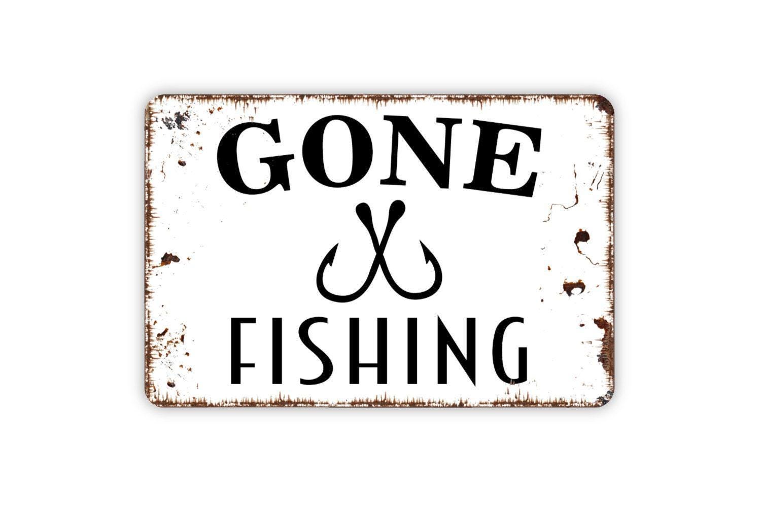 Gone Fishing With Fish Bait Hooks Funny Metal Sign, Farmhouse Wall Decor Modern Wall Metal Sign