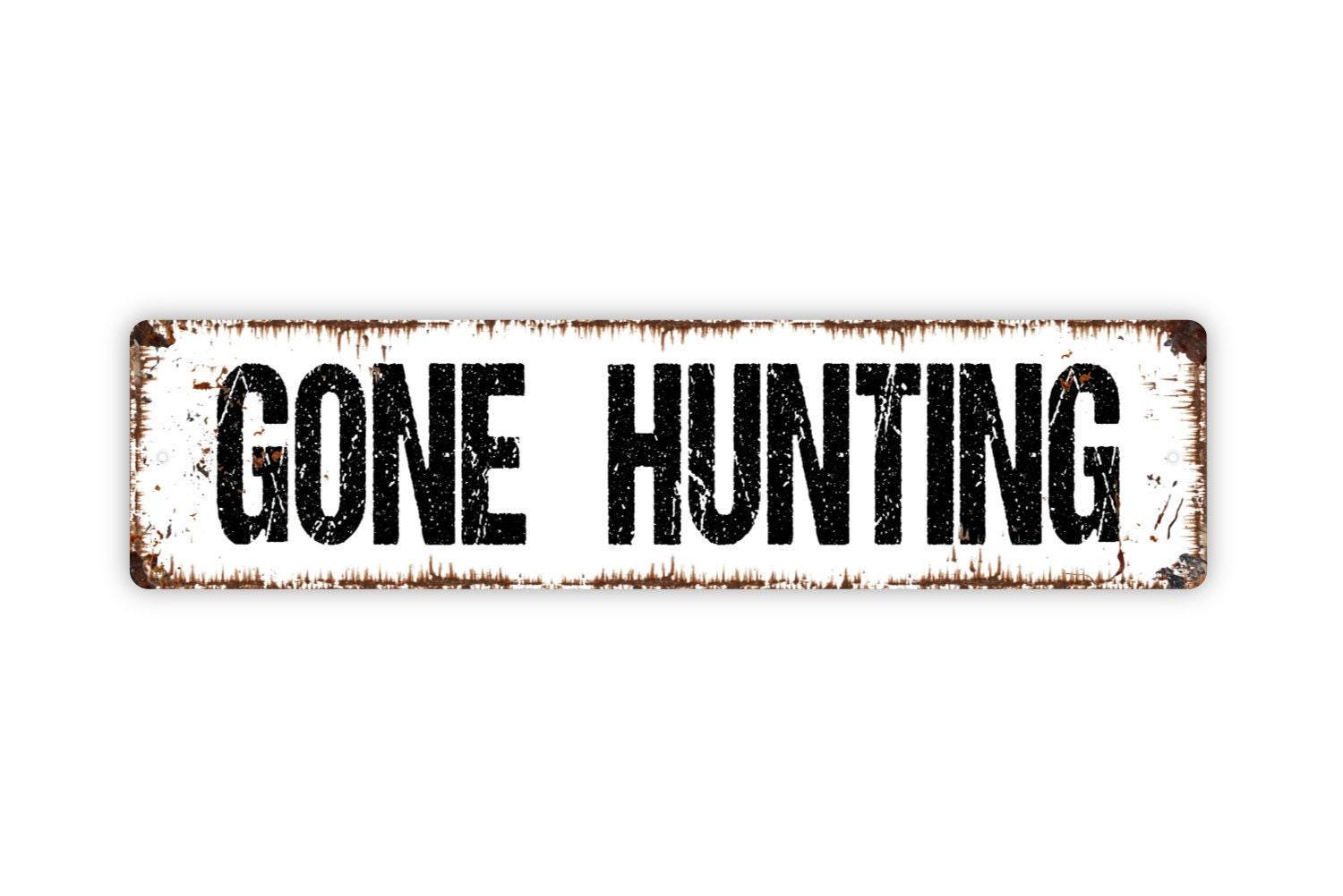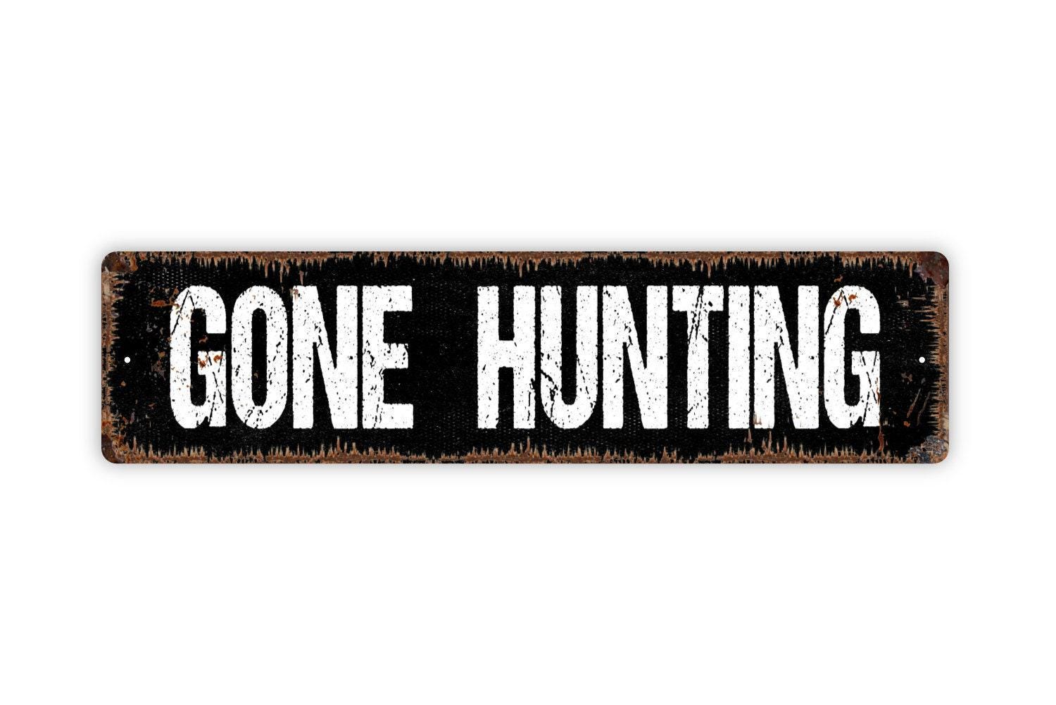 Gone Hunting Sign - Vinyl Sticker Or Metal Street Sign or Door Name Plate Plaque