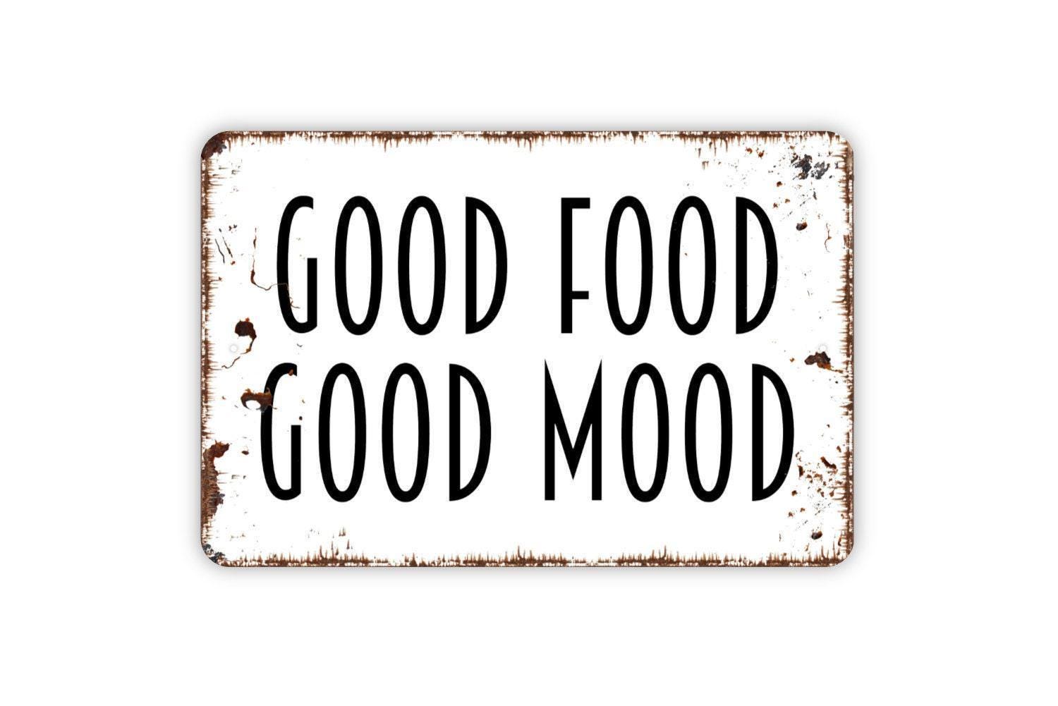 Good Food Good Mood Sign – Kitchen Wall Decor – Rustic Farmhouse Dining Room Sign – Inspirational Quote Art – Metal Sign or Vinyl Sticker
