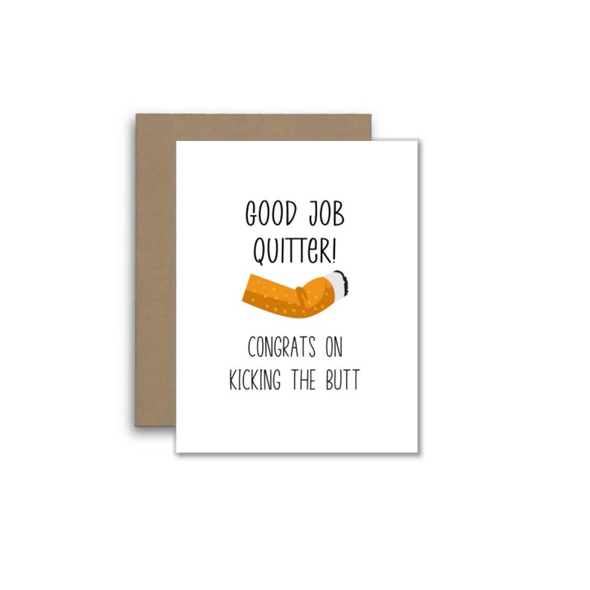 Celebrate a huge win with this “Good Job Quitter! Congrats on Kicking the Butt” greeting card, featuring a playful cigarette butt illustration. Perfect for friends, family, or co-workers who’ve quit smoking, it’s a lighthearted way to honor their strength and determination.