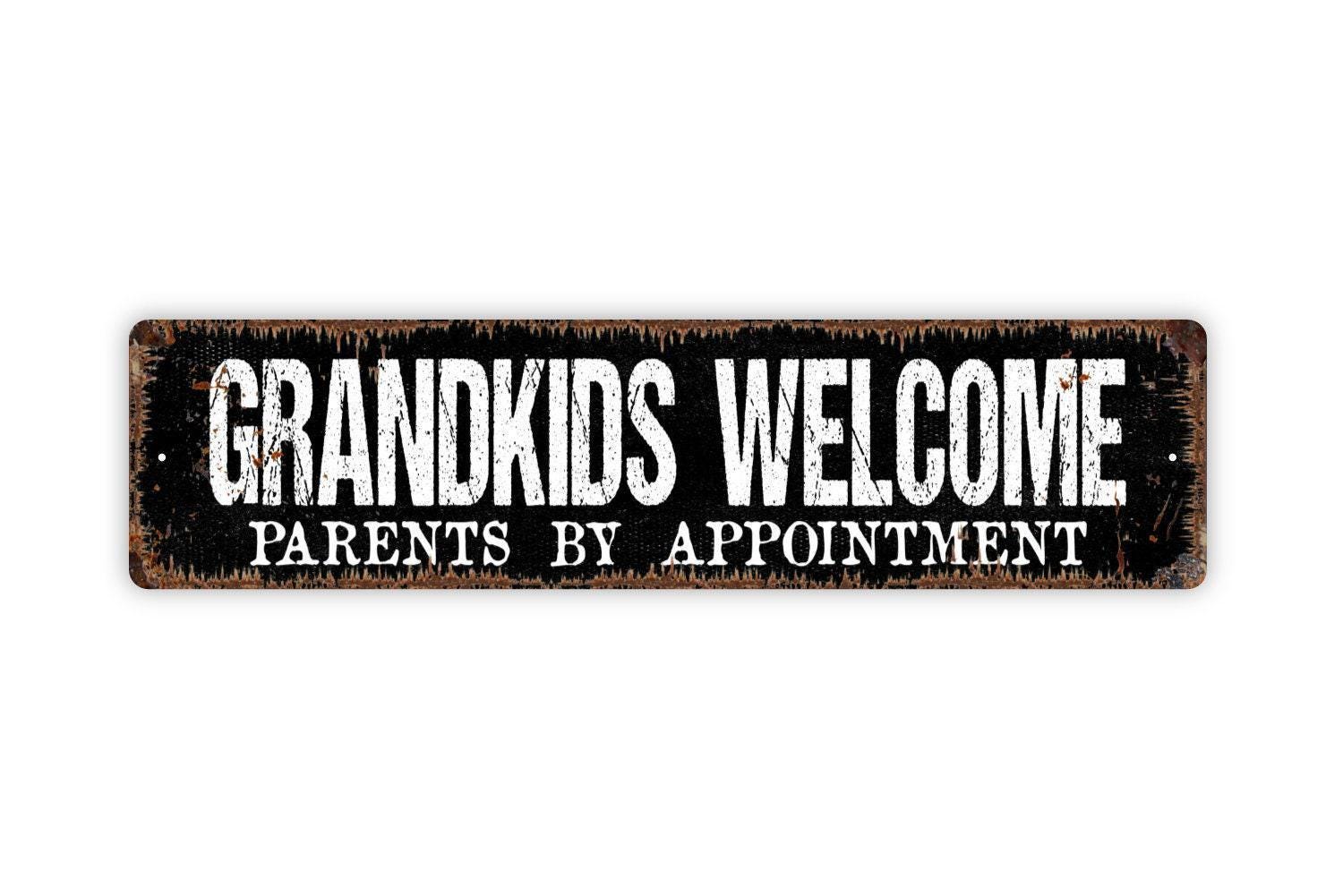 Grandkids Welcome Parents By Appointment Sign - Funny Grandchildren Grandma Grandpa House Rustic Street Metal Sign or Door Name Plate Plaque