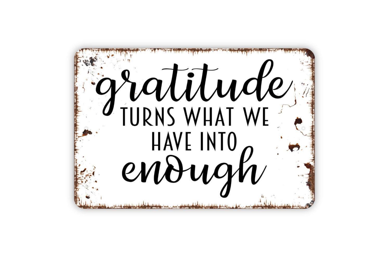 Gratitude Turns What We Have Into Enough Sign - Affirmation Metal Wall Art - Indoor or Outdoor