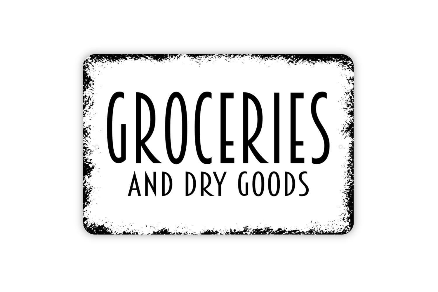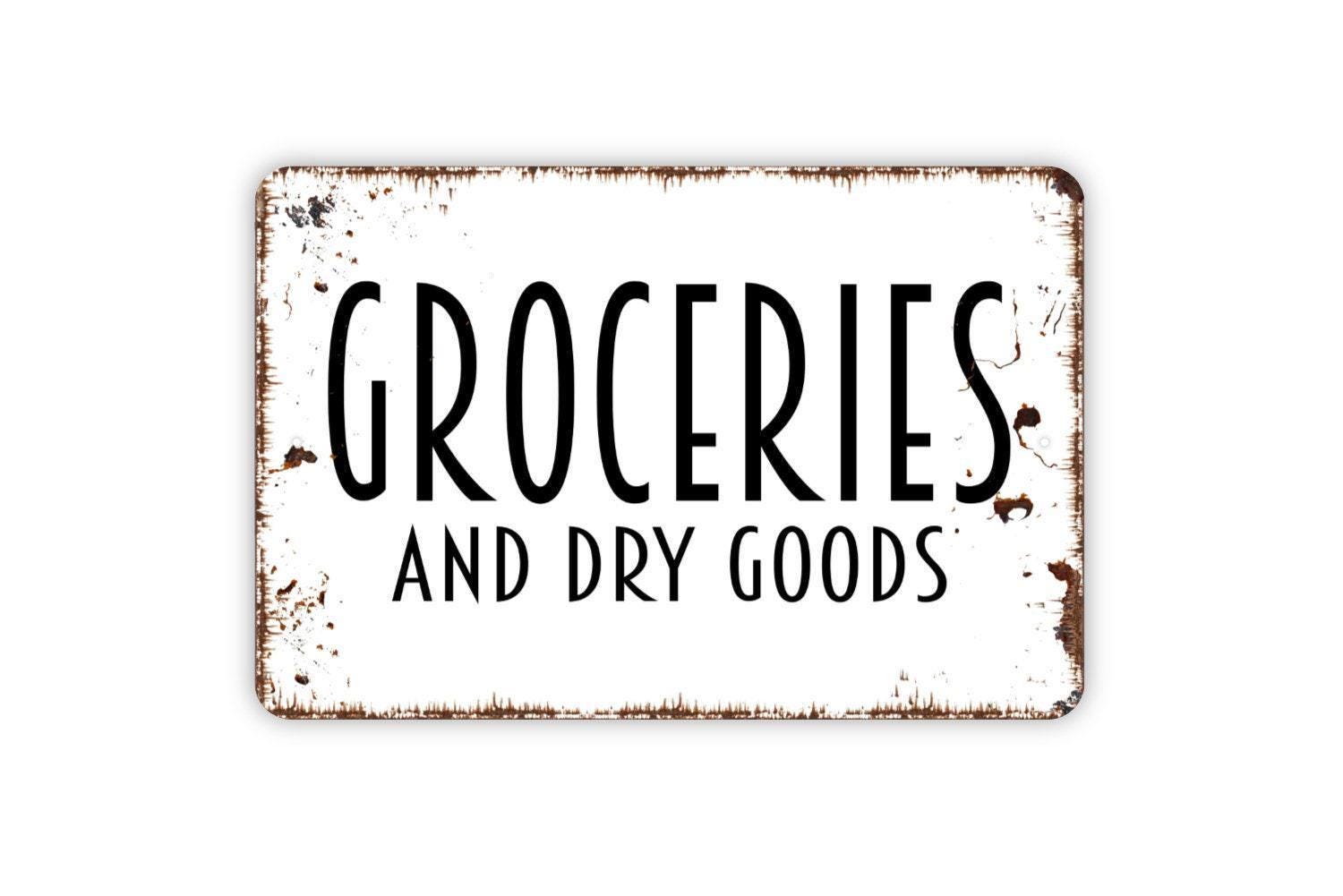 Groceries And Dry Goods Sign | Rustic Farmhouse Kitchen Market Decor | Metal Sign or Vinyl Sticker for Pantry Cafe Store Home