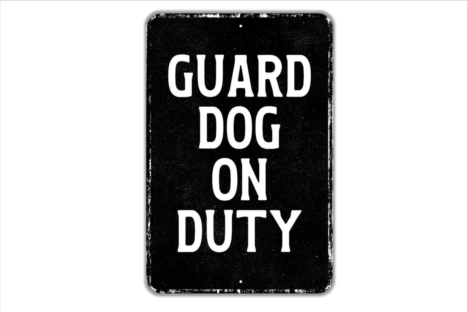 Guard Dog On Duty Sign | Beware of Dog Security Warning Wall Decor | Pet Safety Yard Fence Gate Sign | Vinyl Sticker or Metal Sign
