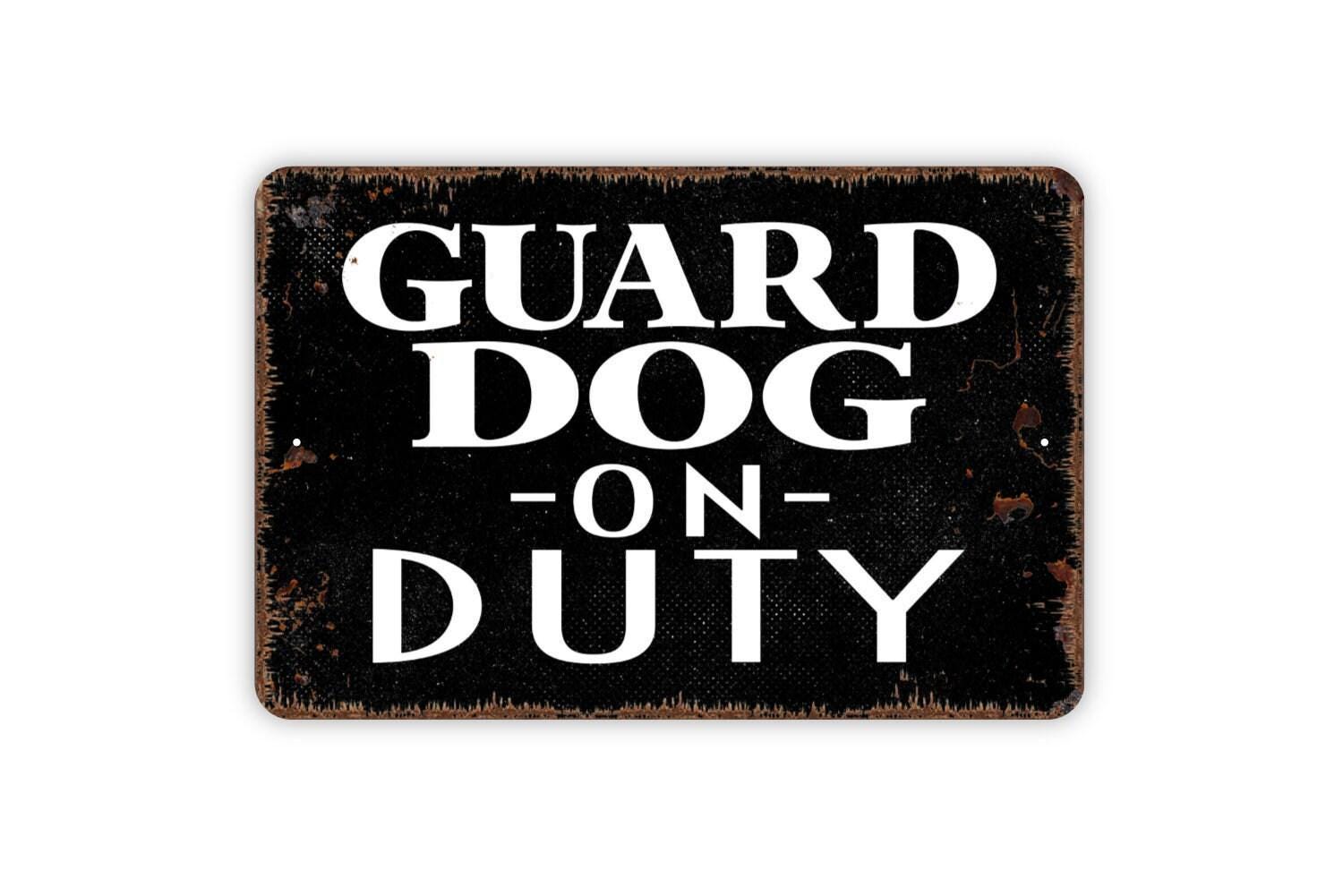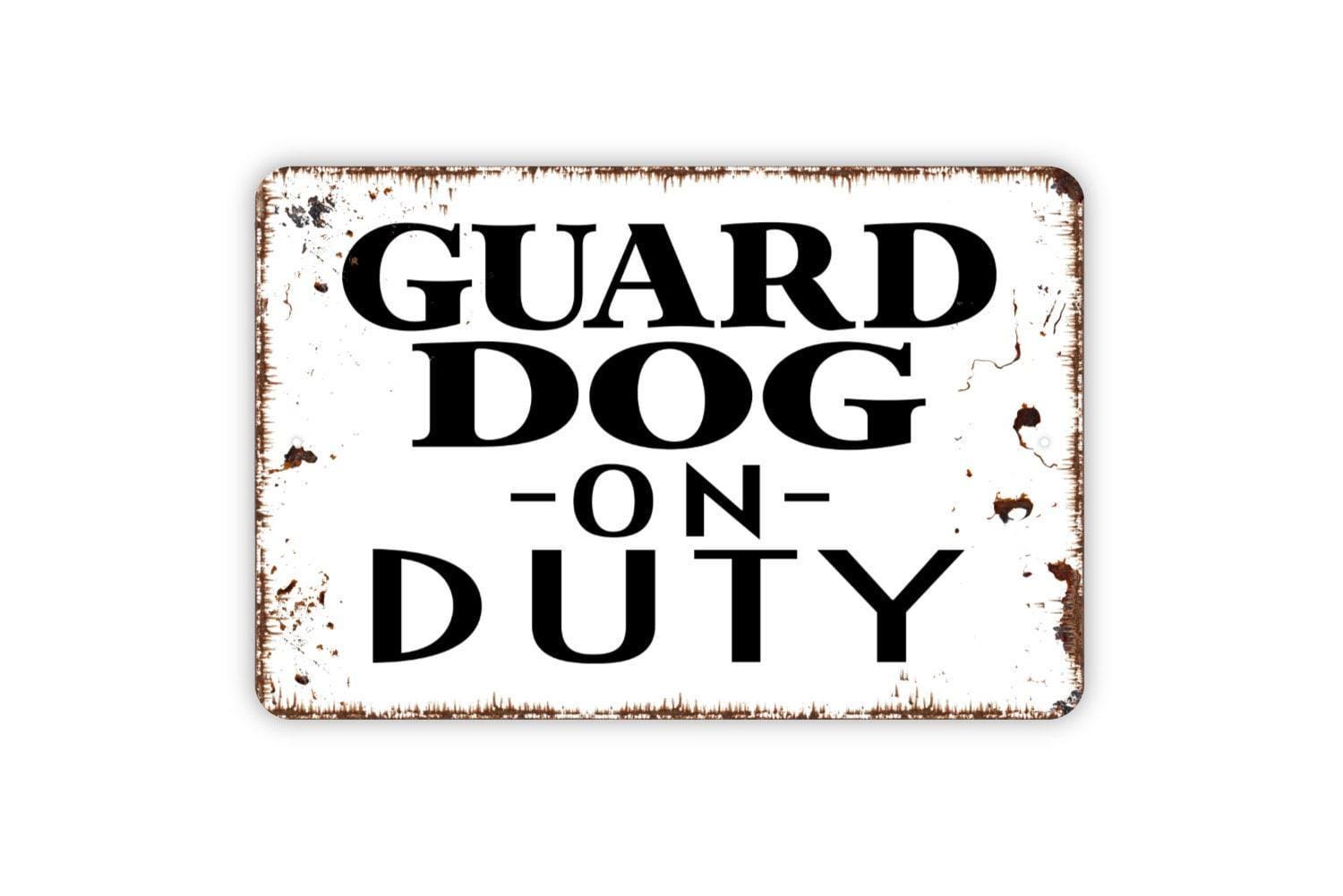 Guard Dog On Duty Sign - Beware Warning Dogs Gate Backyard Outdoor Or Indoor Metal Sign