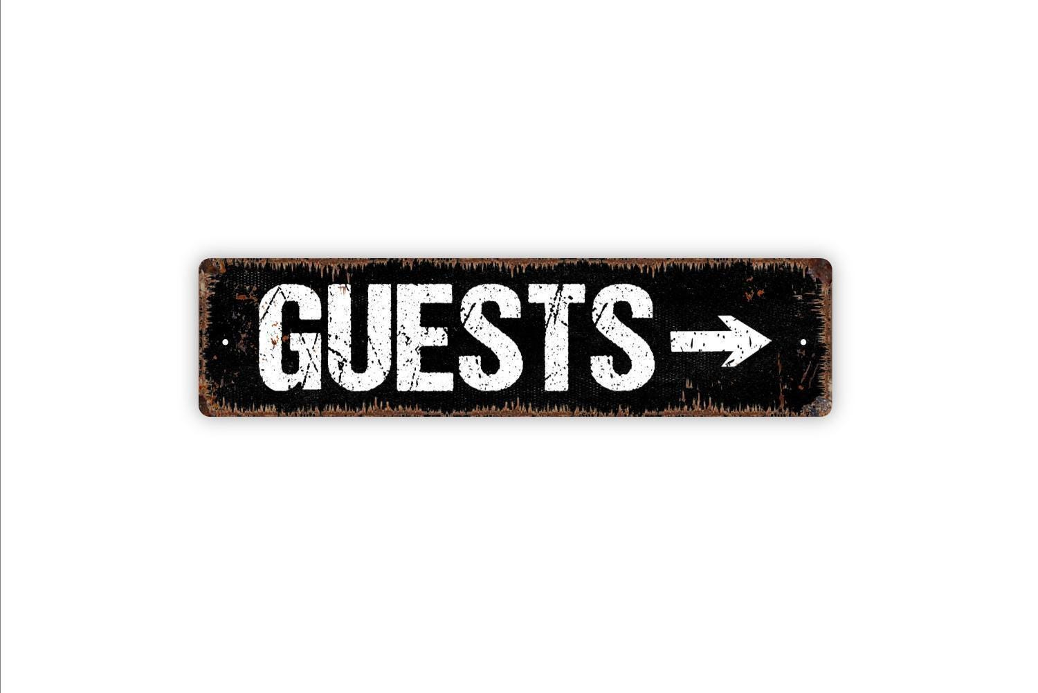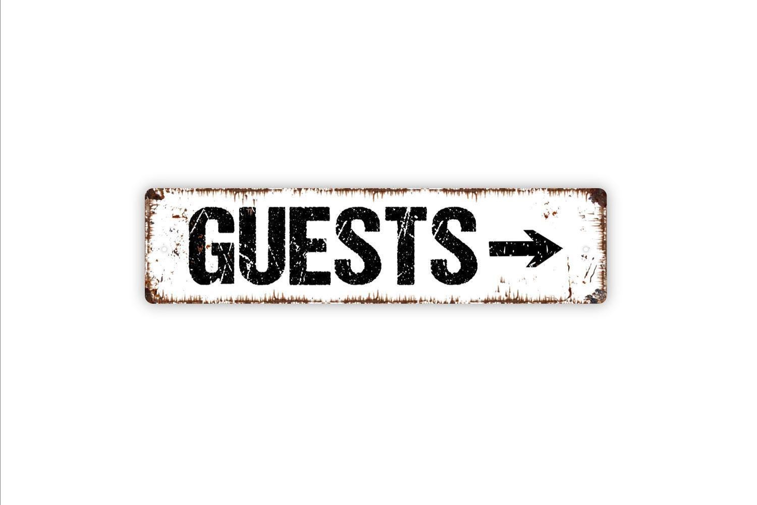 Guests With Arrow Sign - Property Rental Guest Vacation House Vinyl Sticker Or Street Sign or Door Name Plate Plaque