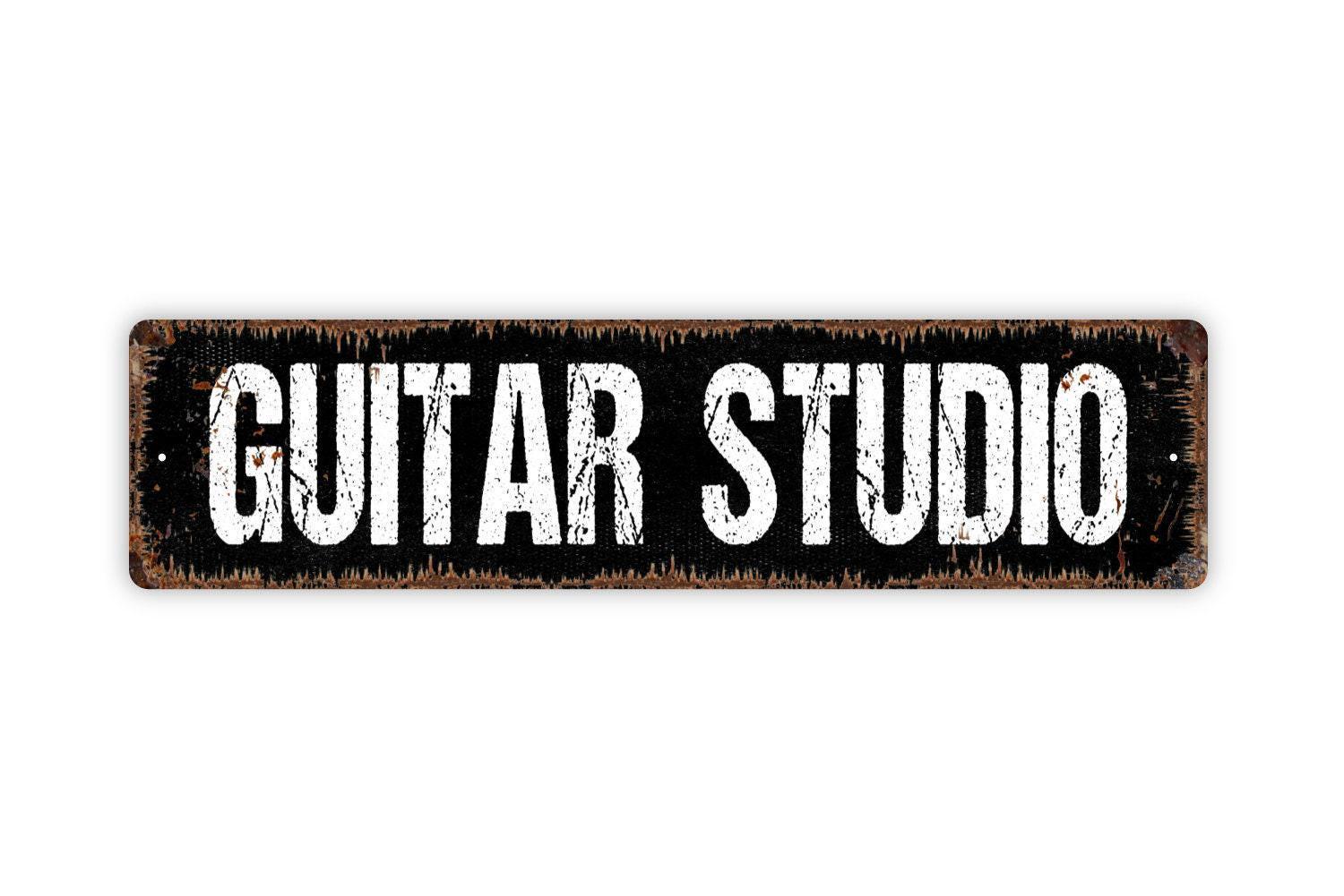 Guitar Shop Sign - Music Room Recording Artist Vinyl Sticker Or Street Metal Sign or Door Name Plate Plaque