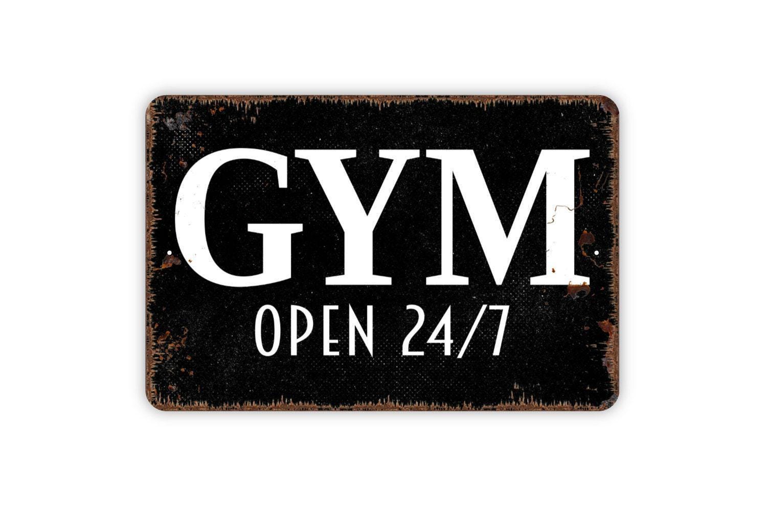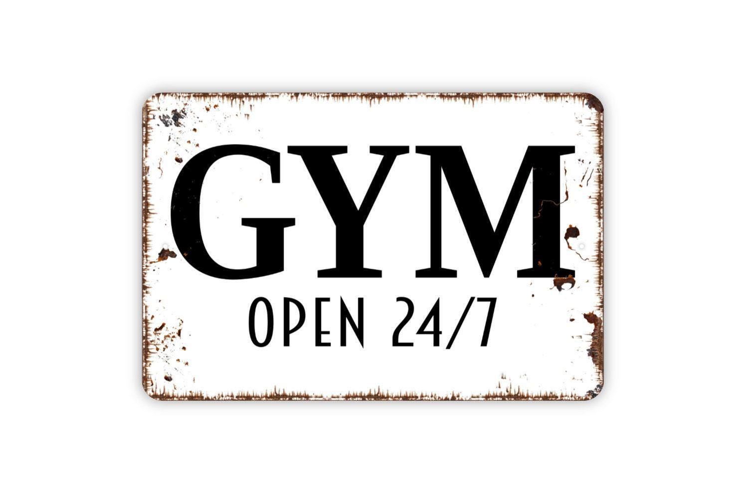 Gym Open 24/7 Sign - Workout Fitness Metal Indoor or Outdoor Wall Art