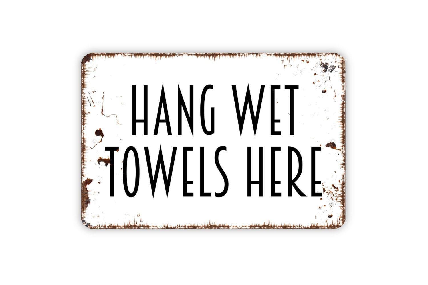 Hang Wet Towels Here Sign - Swimming Pool Beach Bathroom Restroom Metal Wall Art Indoor or Outdoor