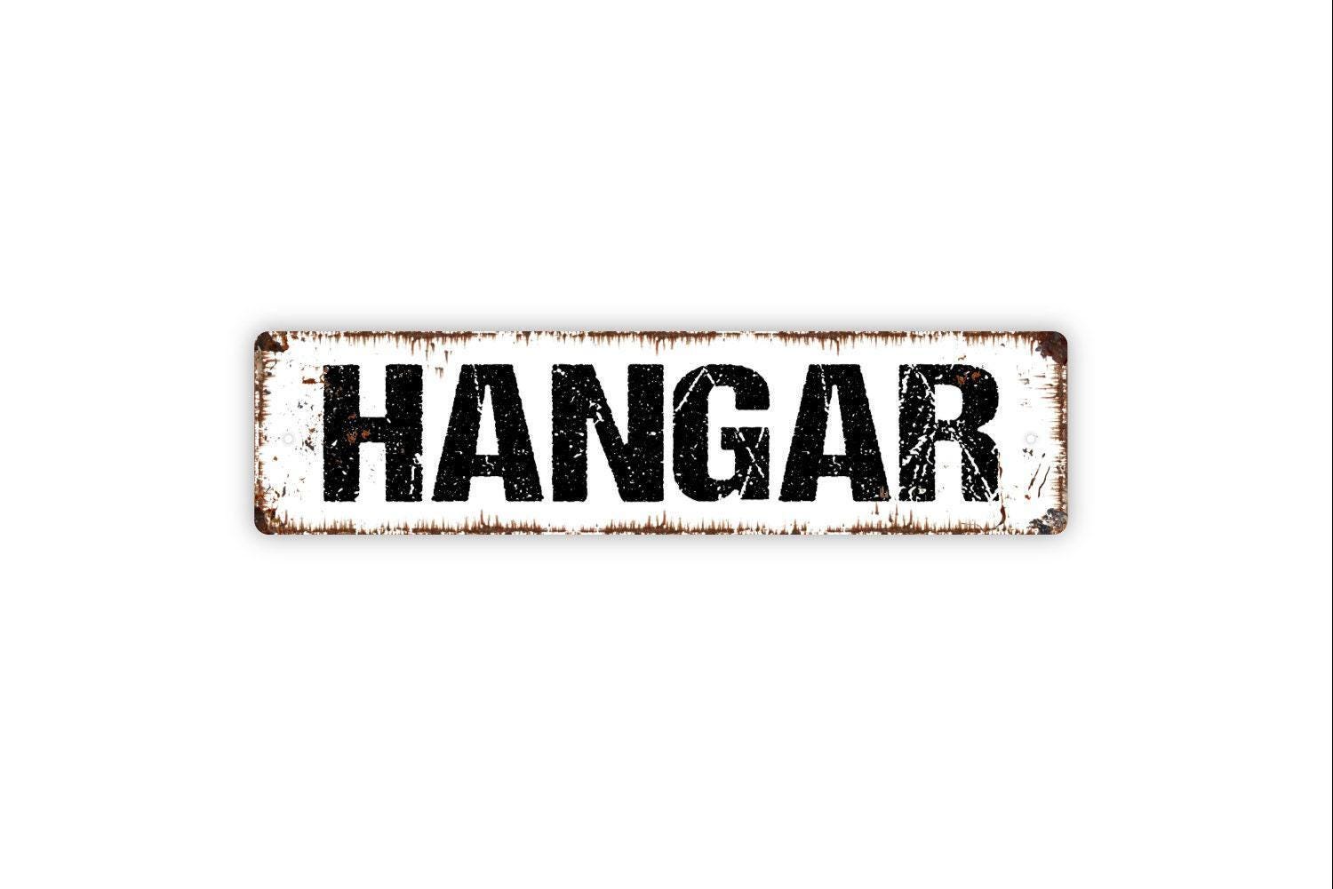Hangar Sign Metal or Vinyl Sticker | Airplane Hangar Wall Decor | Pilot Gift Sign | Aviation Wall Art | Airplane Lover Man Cave Decor