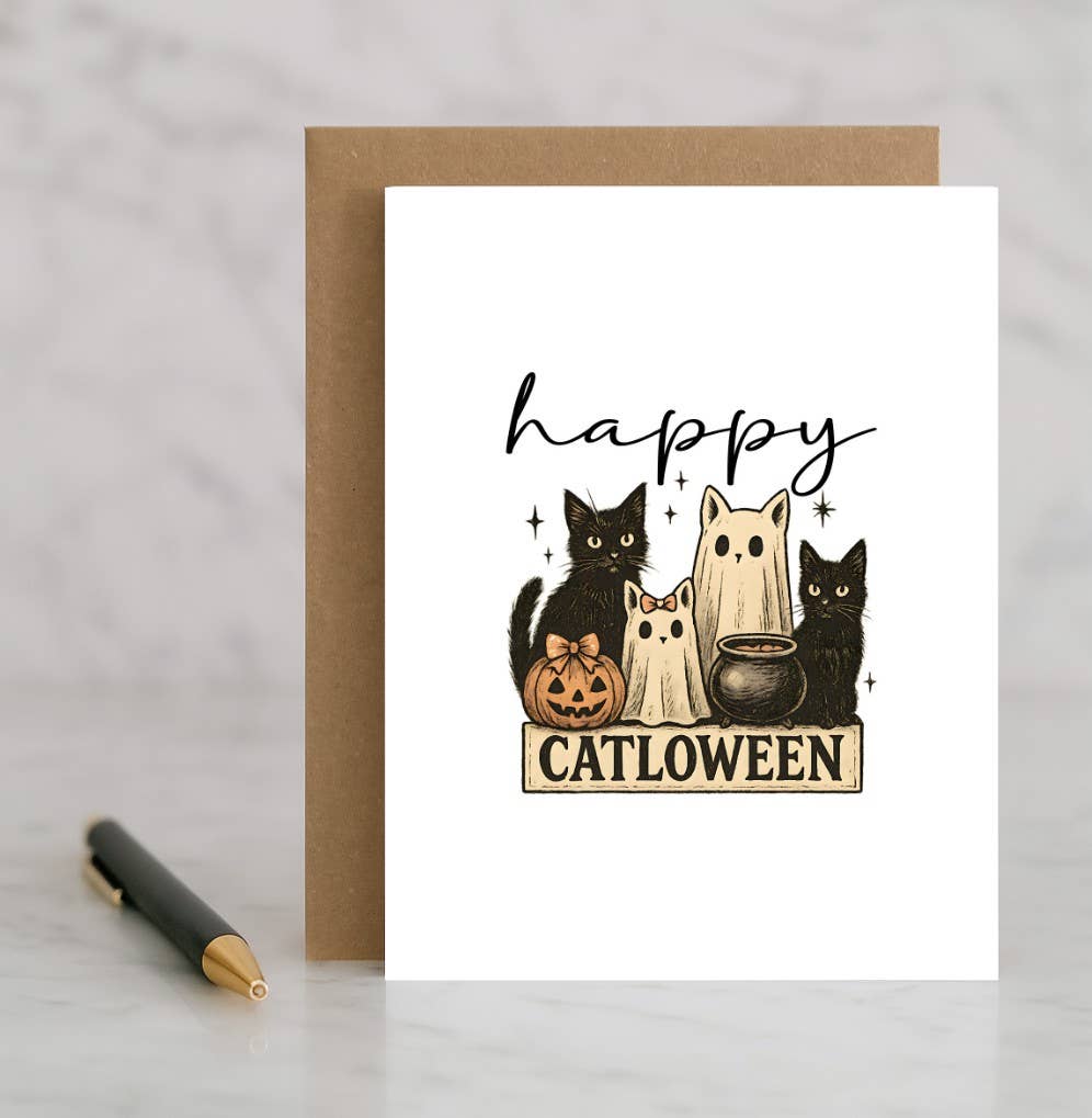 Happy Catloween Card – Cute Halloween Cat Greeting – Funny