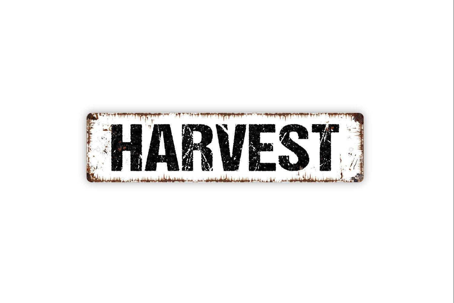 Harvest Sign | Rustic Farmhouse Metal Sign or Vinyl Sticker | Fall Kitchen, Pumpkin Patch, Market, or Autumn Wall Decor