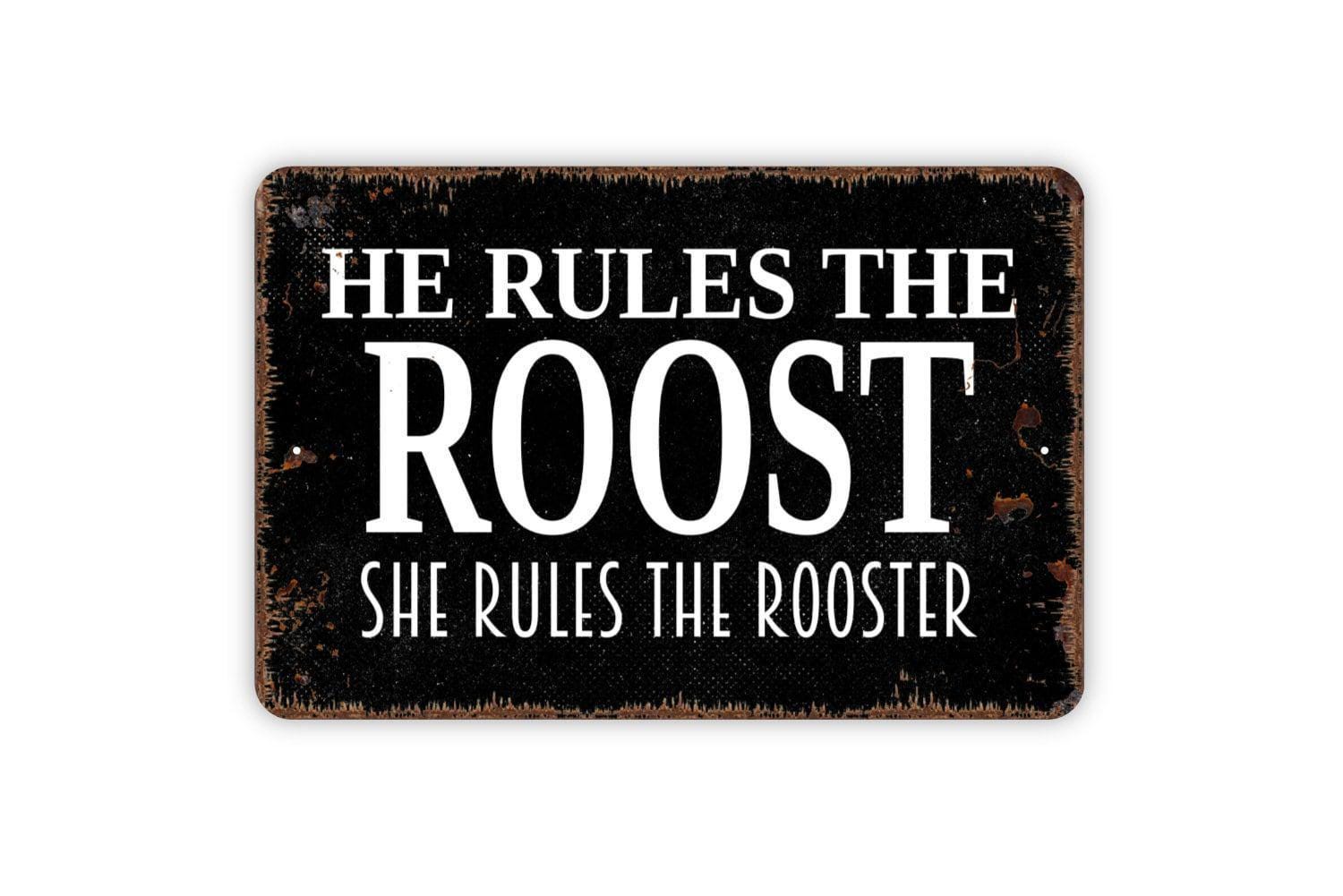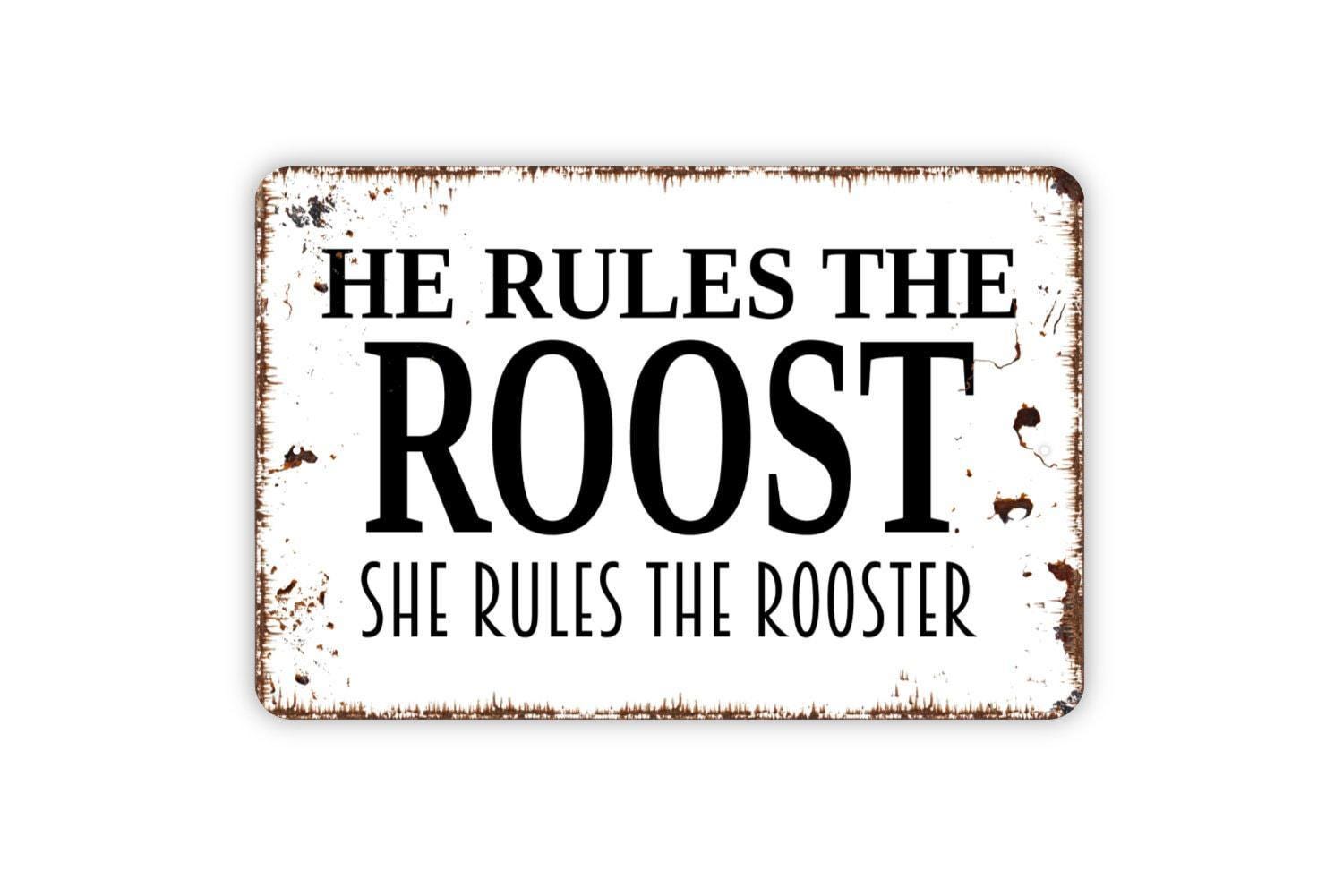 He Rules the Roost She Rules the Rooster Sign | Funny Farmhouse Wall Decor | Metal Sign or Vinyl Sticker for Home, Kitchen, or Barn