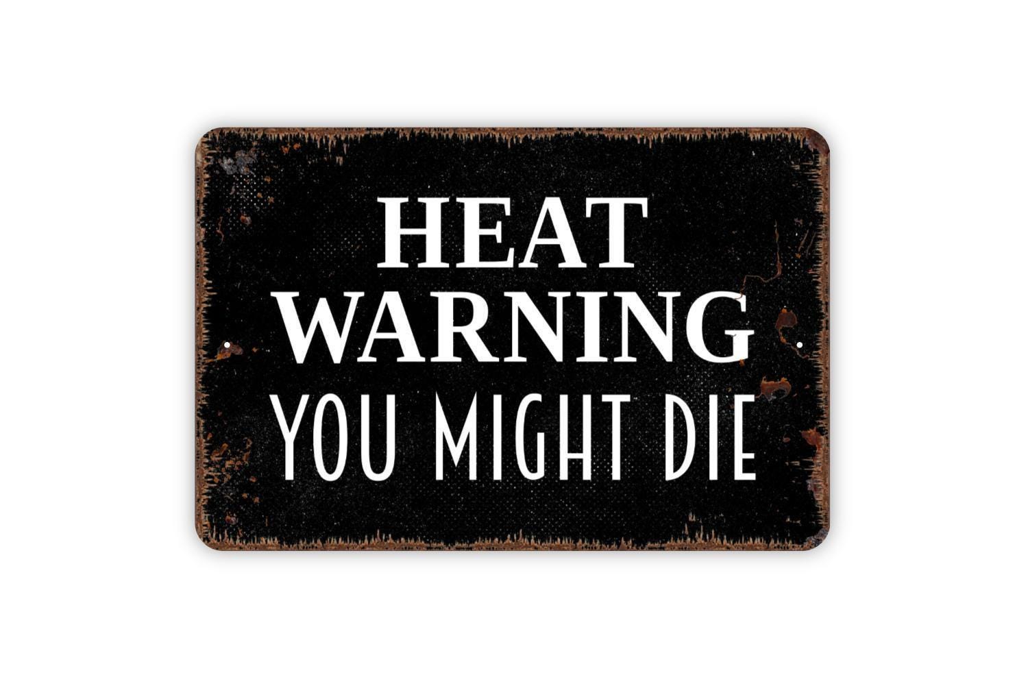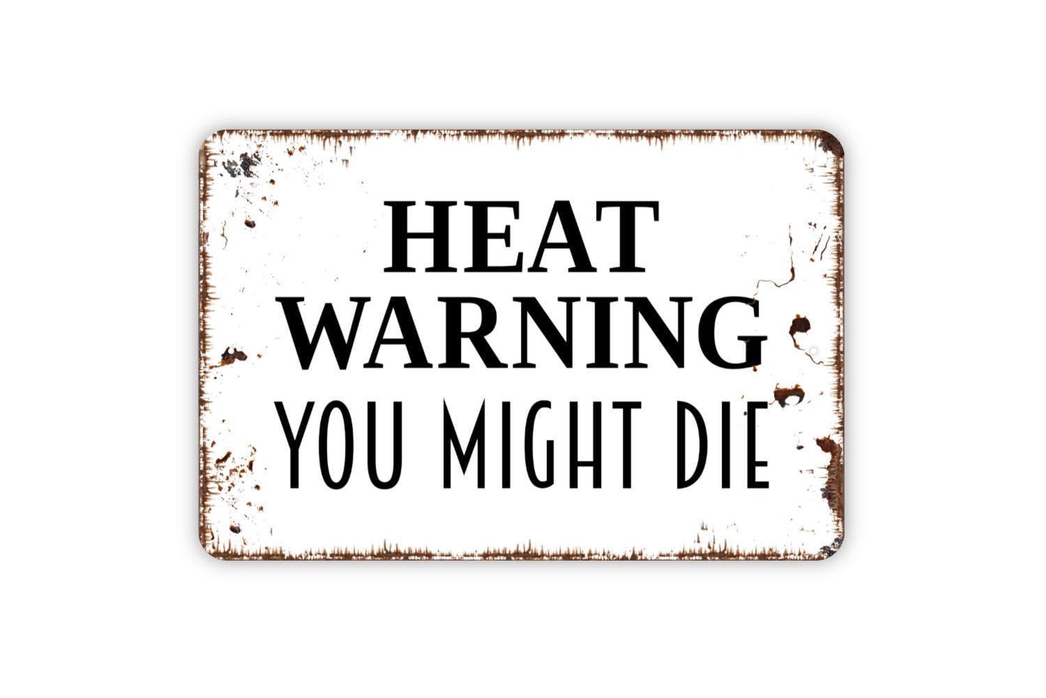 Heat Warning You Might Die Sign - Notice Warning Beware Excessive Hot Temperature Outdoor Or Indoor Metal Sign Wall Art
