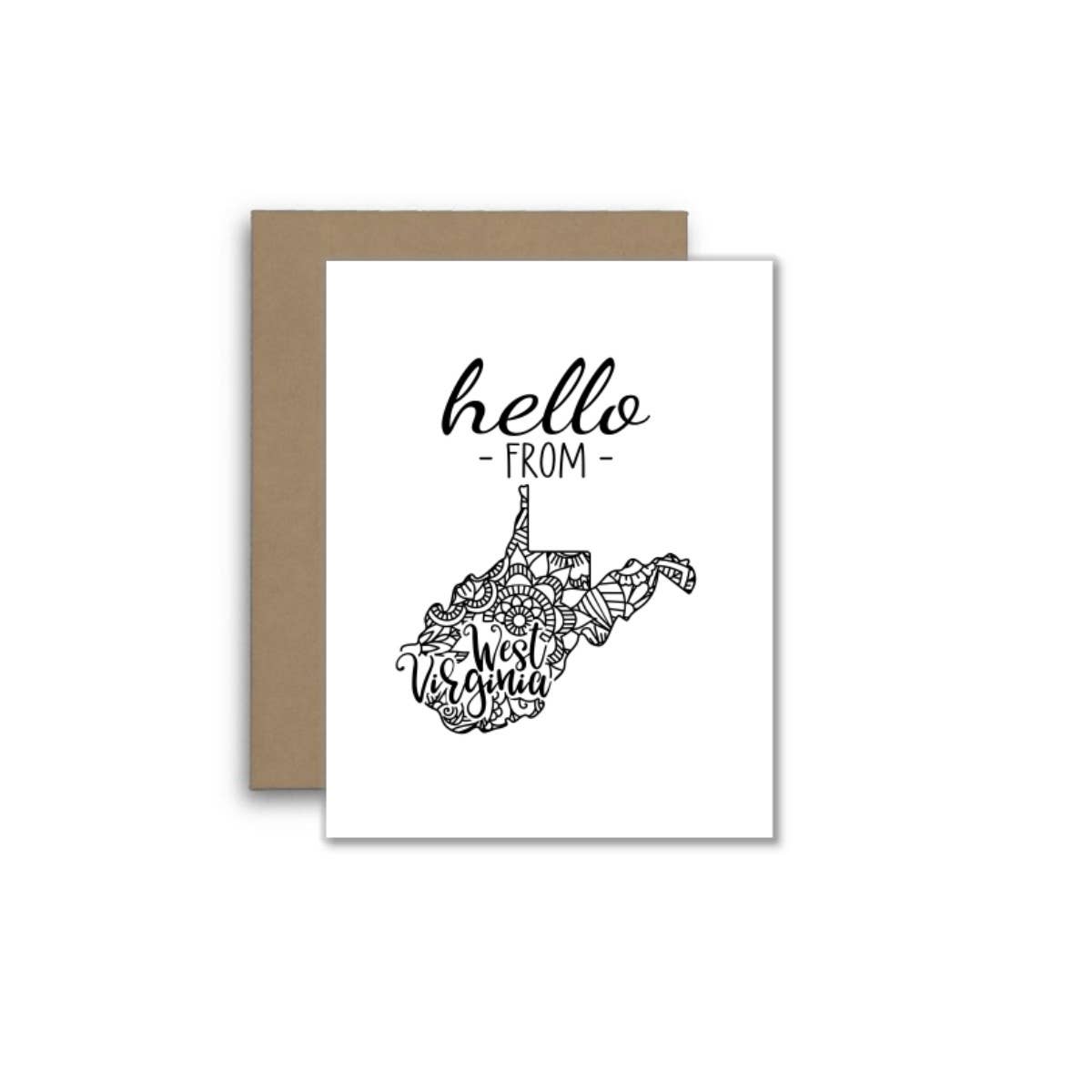 Send a little piece of the Mountain State with this “Hello from West Virginia” card, showcasing the state outline filled with an elegant boho mandala design. Perfect for sharing love, greetings, or encouragement with a stylish twist.