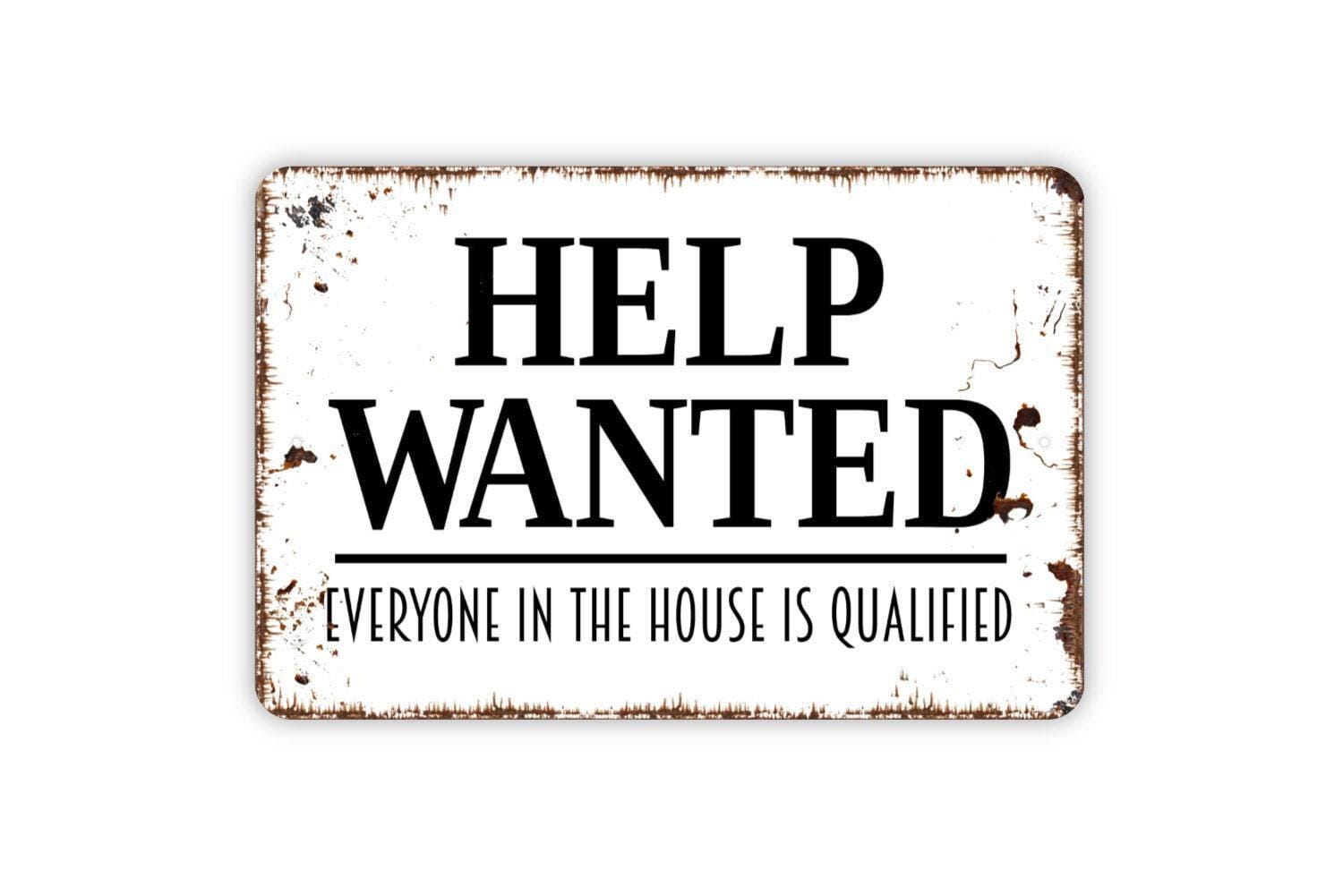 Help Wanted Everyone In The House Is Qualified Sign – Funny Family Wall Decor – Rustic Household Humor Sign – Metal Sign or Vinyl Sticker