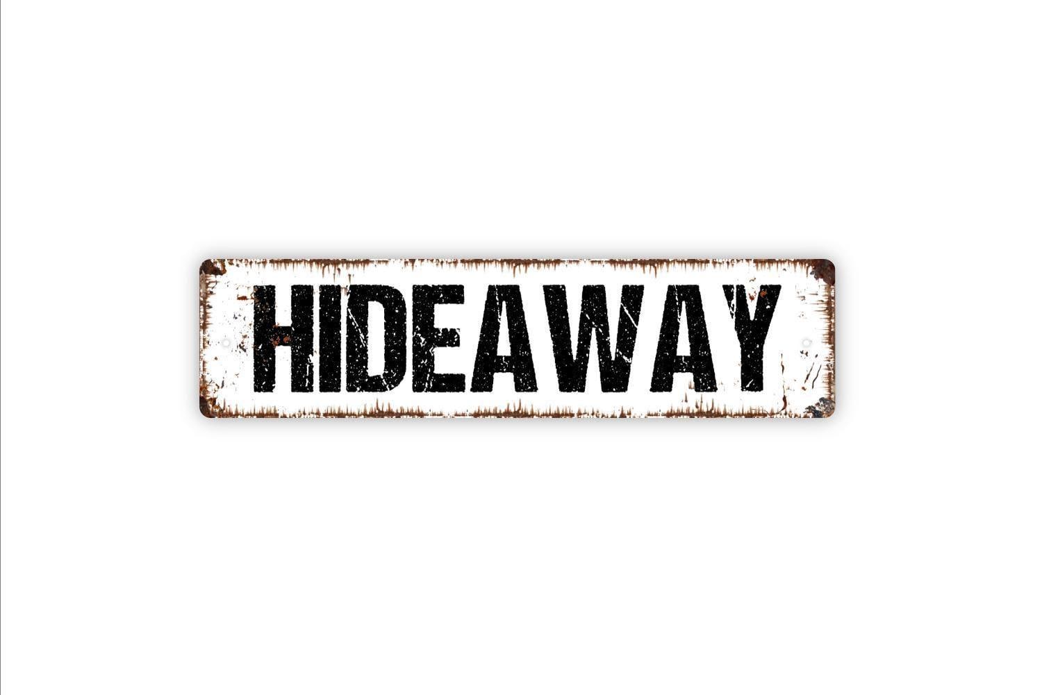 Hideaway Sign - Welcome To Our Cabin Retreat Lake House Beach Home Vinyl Sticker Or Street Metal Sign or Door Name Plate Plaque