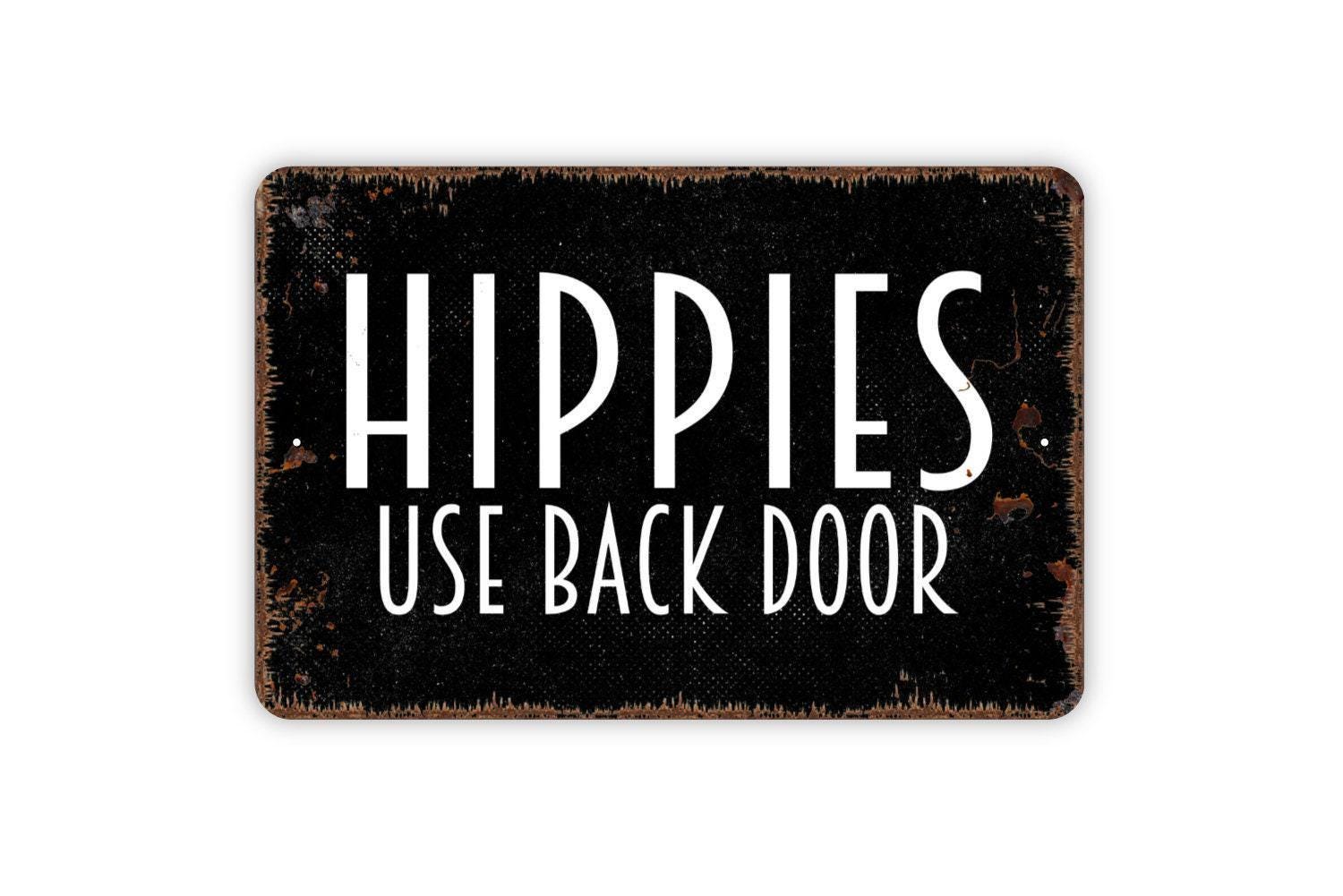 Hippies Use Back Door Sign - Funny Welcome Indoor or Outdoor Metal Wall Art