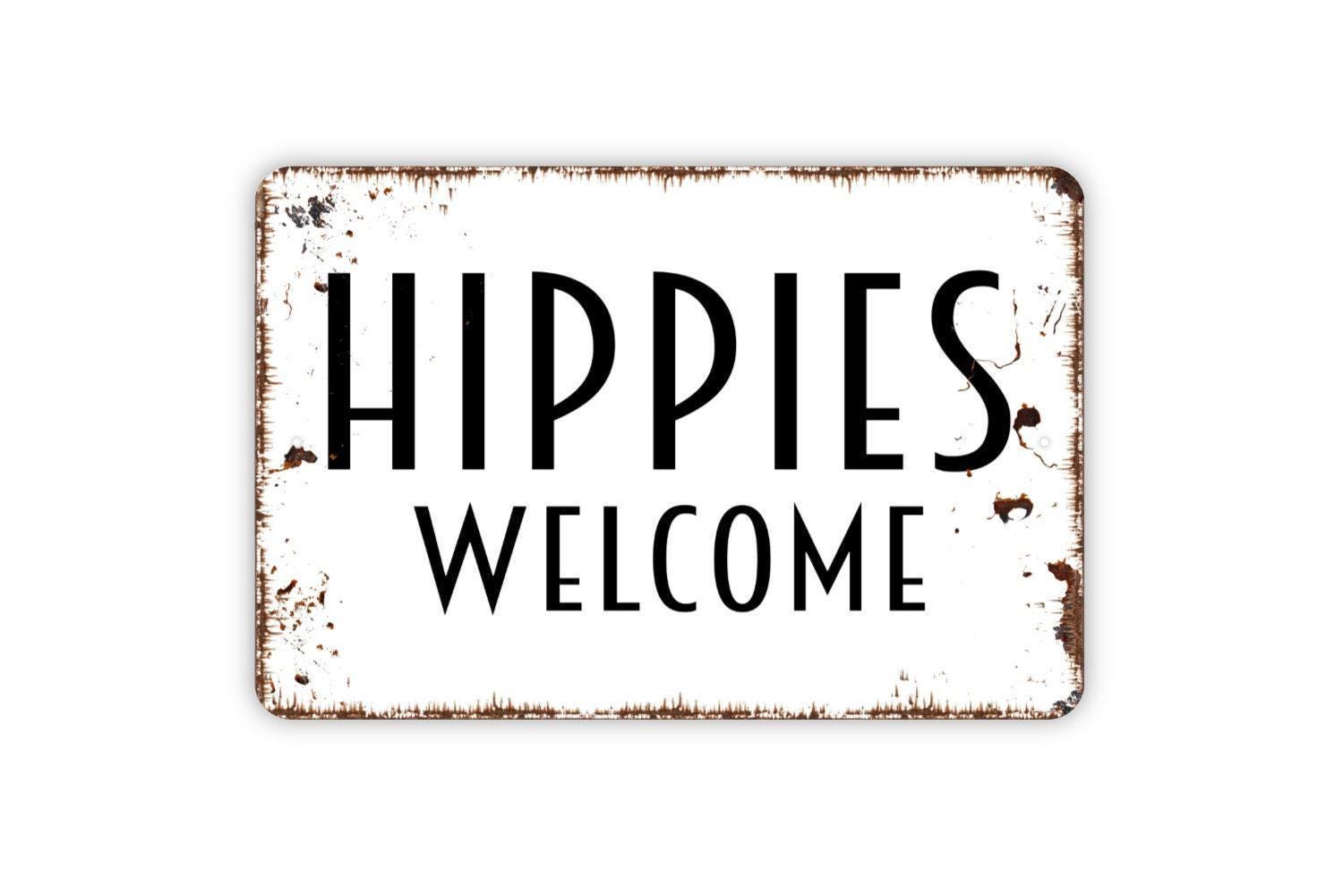 Hippies Welcome Sign - Metal Sign, Farmhouse Contemporary Modern Wall Metal Sign