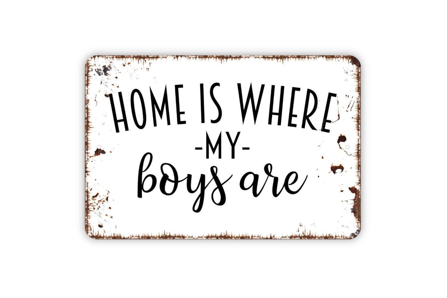 Home Is Where My Boys Are Sign - Metal Indoor or Outdoor Wall Art
