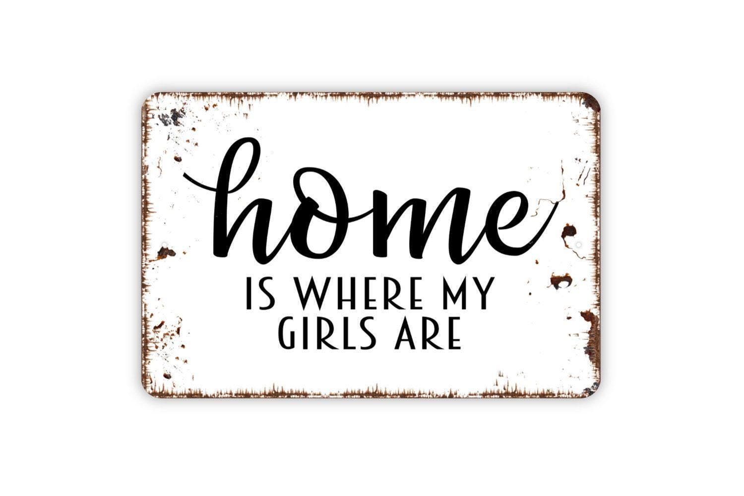 Home Is Where My Girls Are Sign | Rustic Farmhouse Family Wall Decor | Metal Sign or Vinyl Sticker for Living Room Bedroom Home