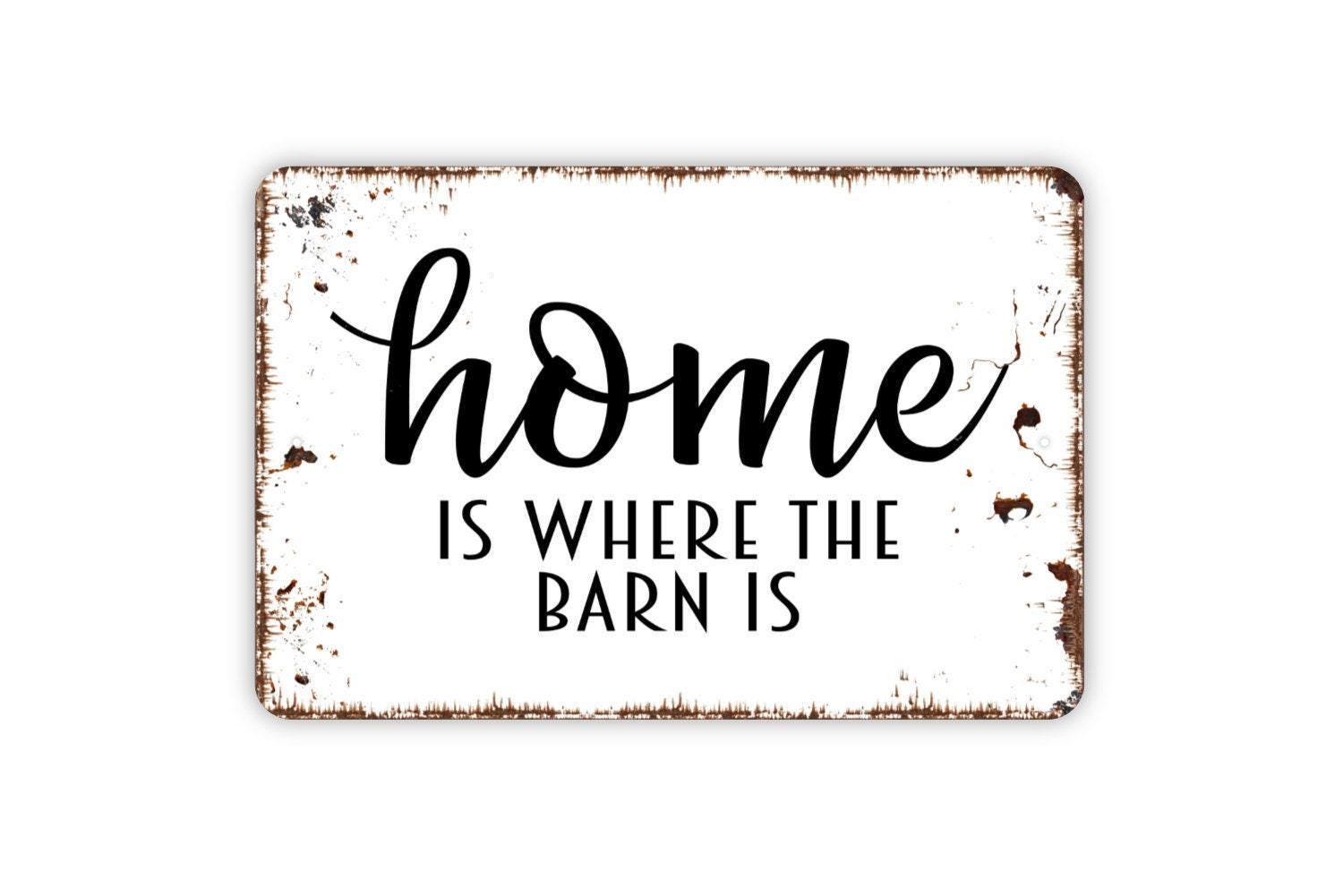 Home Is Where The Barn Is Sign | Rustic Farmhouse Country Decor | Metal Sign or Vinyl Sticker for Barn Yard Farm Home