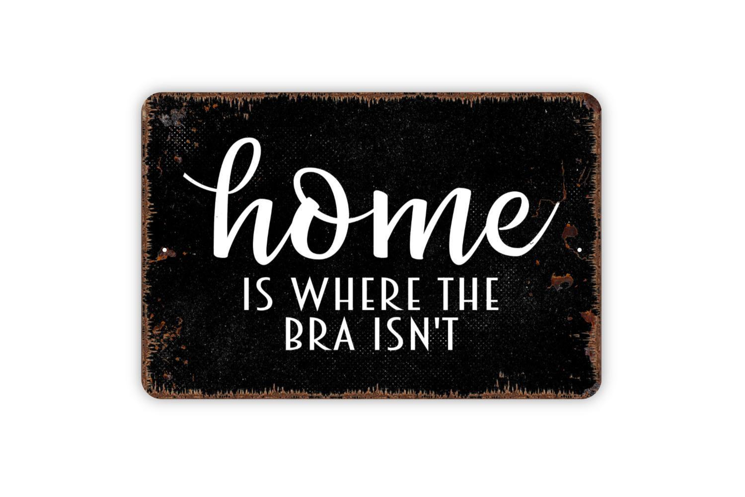 Home Is Where The Bra Isn’t Sign Metal or Vinyl Sticker | Funny Farmhouse Wall Art | Rustic Bedroom Sign | Humor Home Decor | Gift for Her