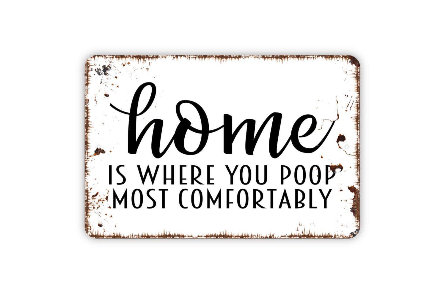 Home Is Where You Poop Most Comfortably Sign Metal or Vinyl Sticker | Funny Bathroom Sign | Rustic Toilet Decor | Farmhouse Washroom Sticker
