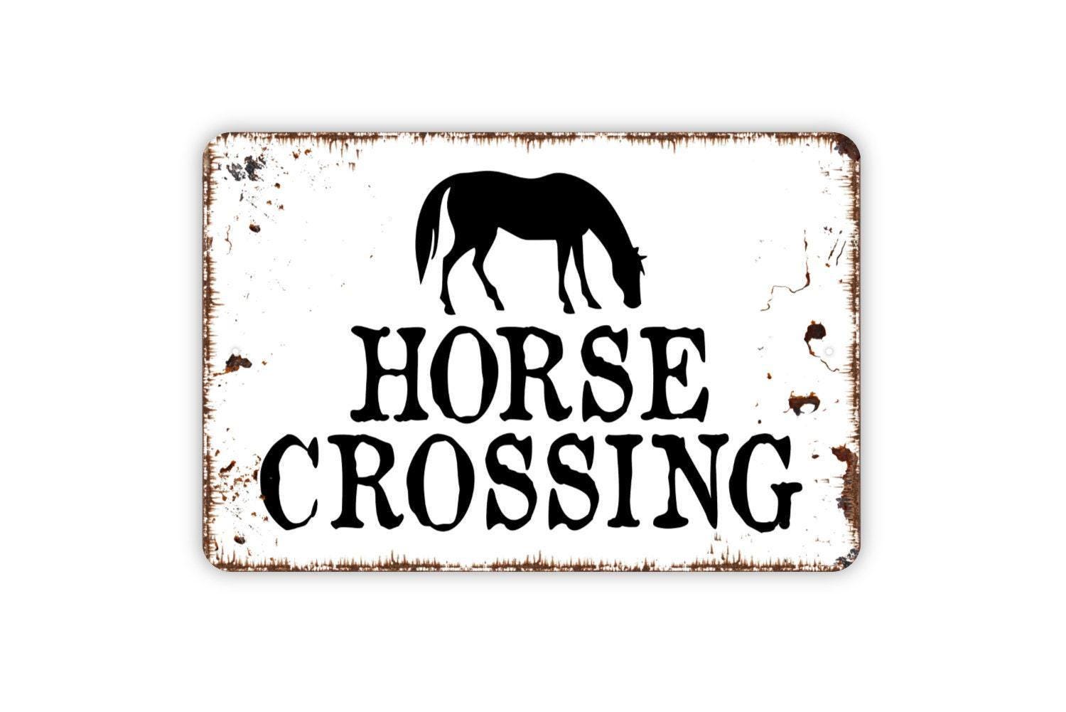 Horse Crossing Sign – Rustic Farmhouse Wall Decor – Country Barn or Ranch Sign – Equestrian Wall Art – Metal Sign or Vinyl Sticker