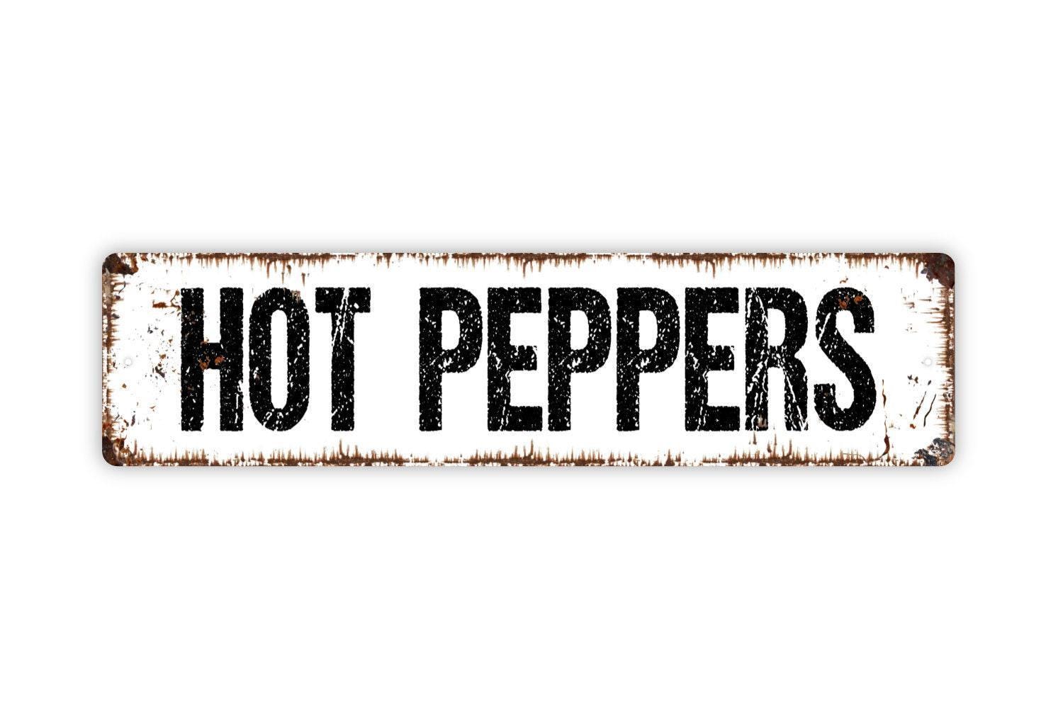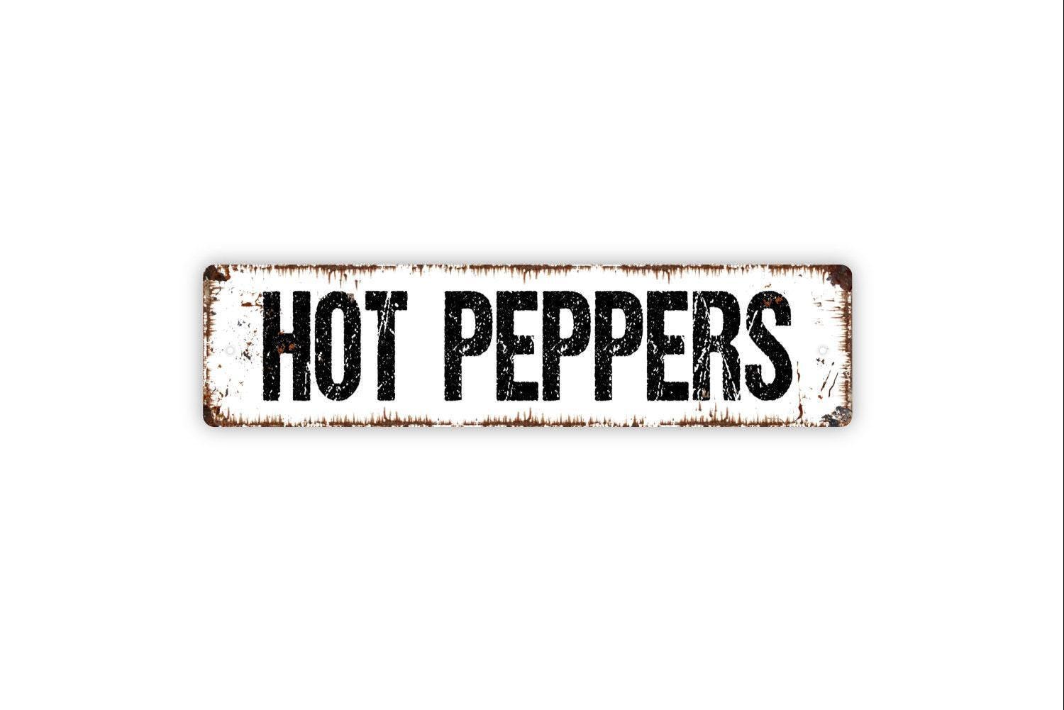 Hot Peppers Sign - Vegetables Garden Marker Produce Farmers Market Vinyl Sticker Or Street Metal Sign or Door Name Plate Plaque