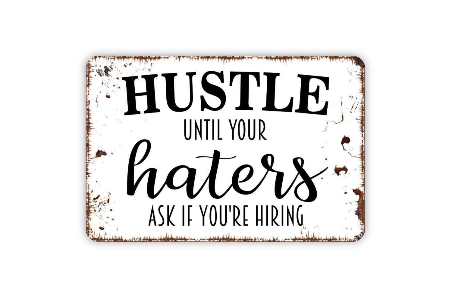 Hustle Until Your Haters Ask If You're Hiring Sign - Metal Indoor or Outdoor Wall Art