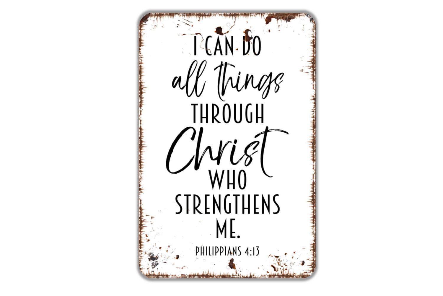 I Can Do All Things Through Christ Who Strengthens Me Sign – Christian Bible Verse Decor – Rustic Farmhouse Faith Home Metal Sign or Sticker