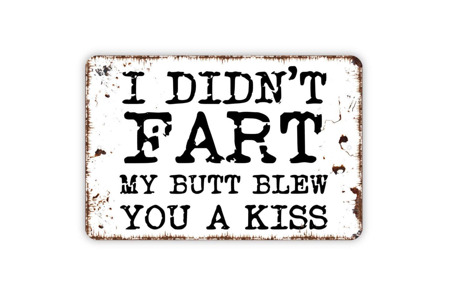 I Didn’t Fart My Butt Blew You A Kiss Sign – Funny Bathroom Humor Wall Decor – Rustic Farmhouse Gag Gift Sign – Metal Sign or Sticker