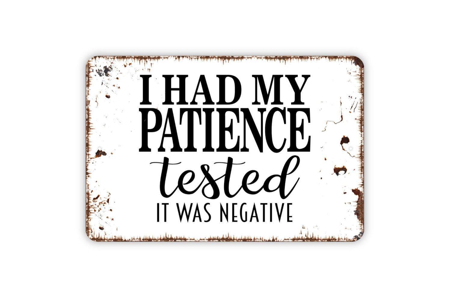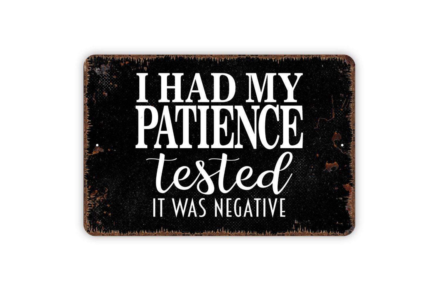 I Had My Patience Tested It Was Negative Sign - Funny Metal Wall Art - Indoor or Outdoor