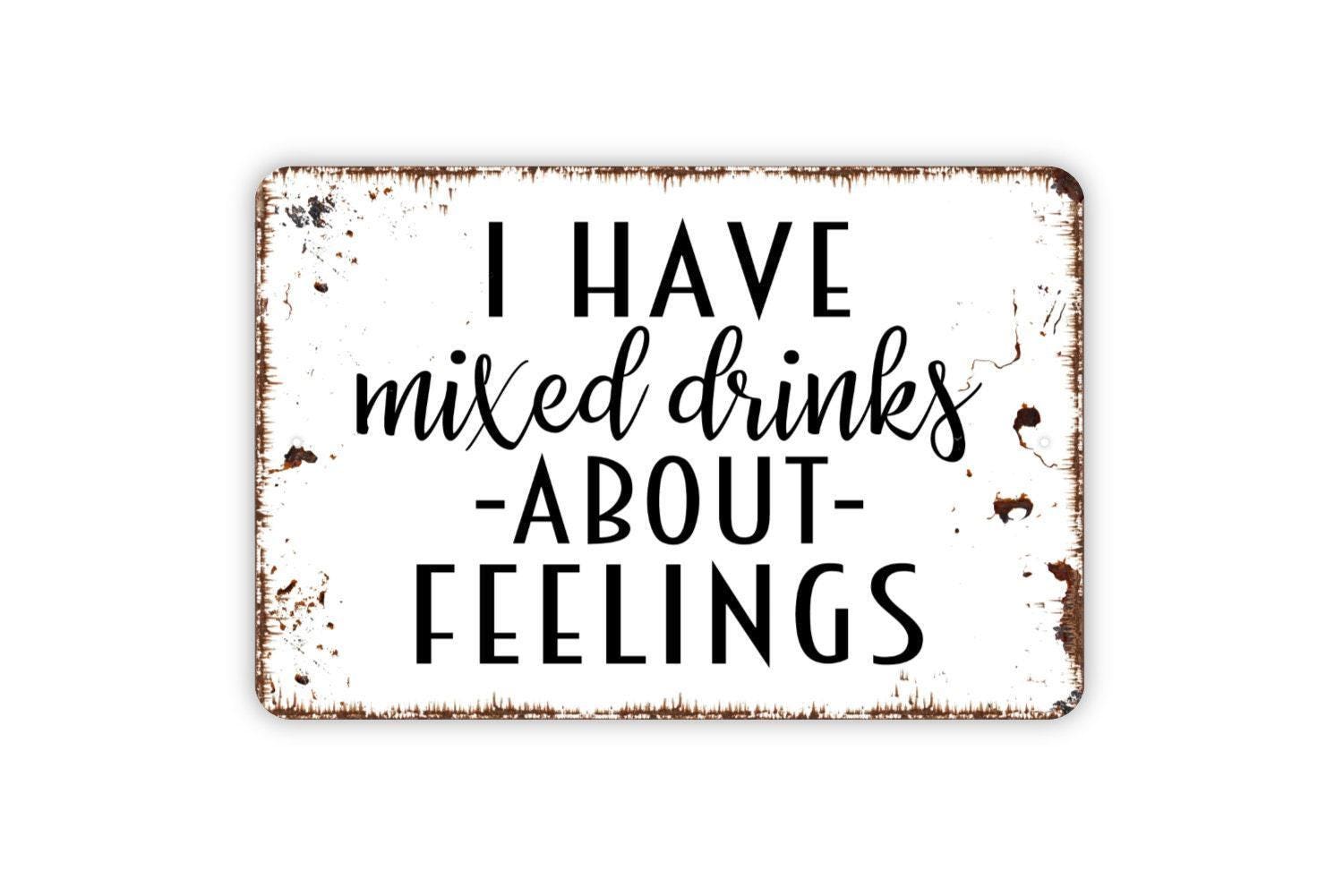 I Have Mixed Drinks About Feelings Sign - Funny Backyard Man Cave Bar Metal Sign, Farmhouse Contemporary Modern Wall Metal Sign