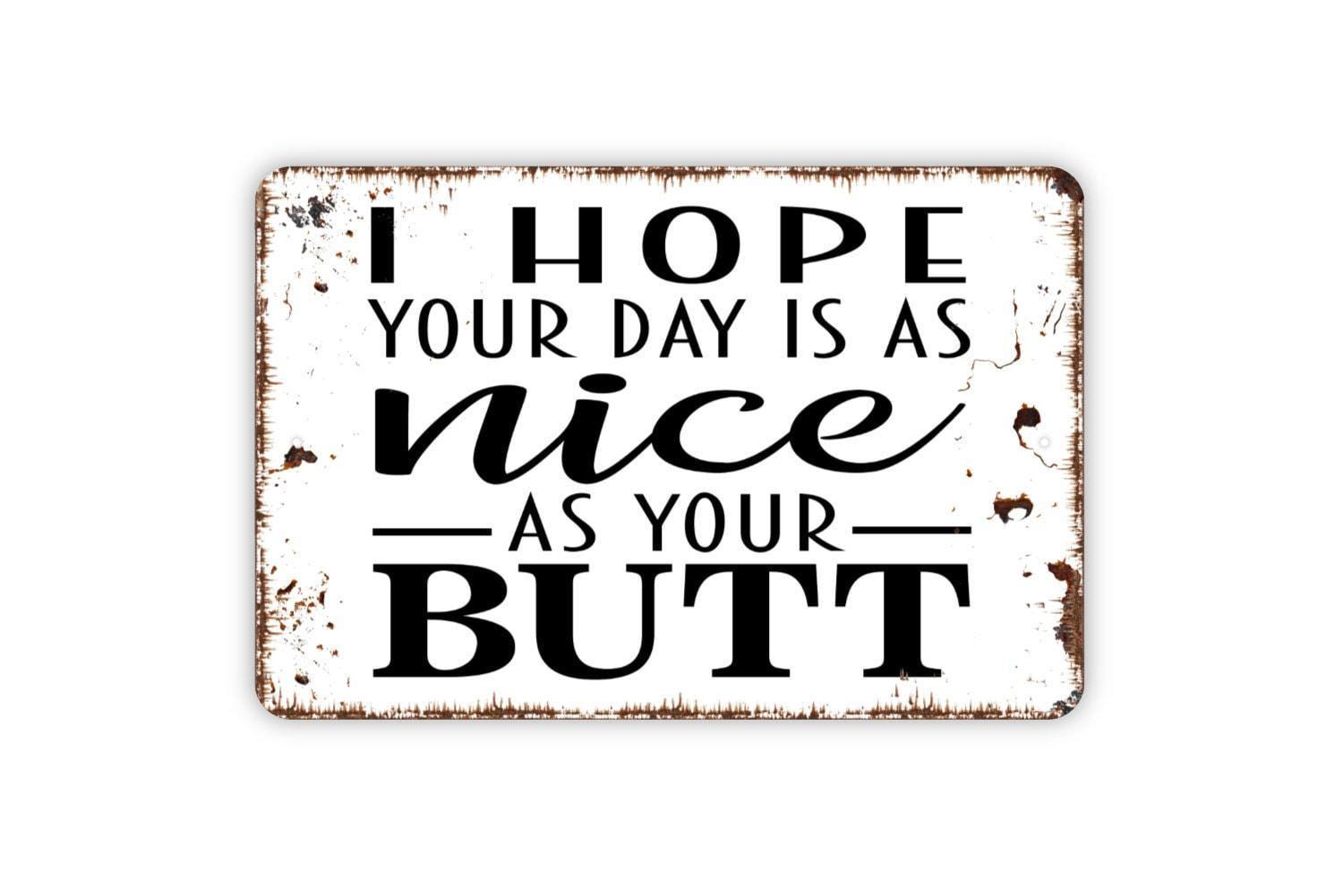 Get laughs with this I Hope Your Day Is As Nice As Your Butt Sign, available as a metal wall sign or vinyl sticker. Perfect for bathrooms, powder rooms, or as a gag gift, this funny sign adds humor and personality to any space.