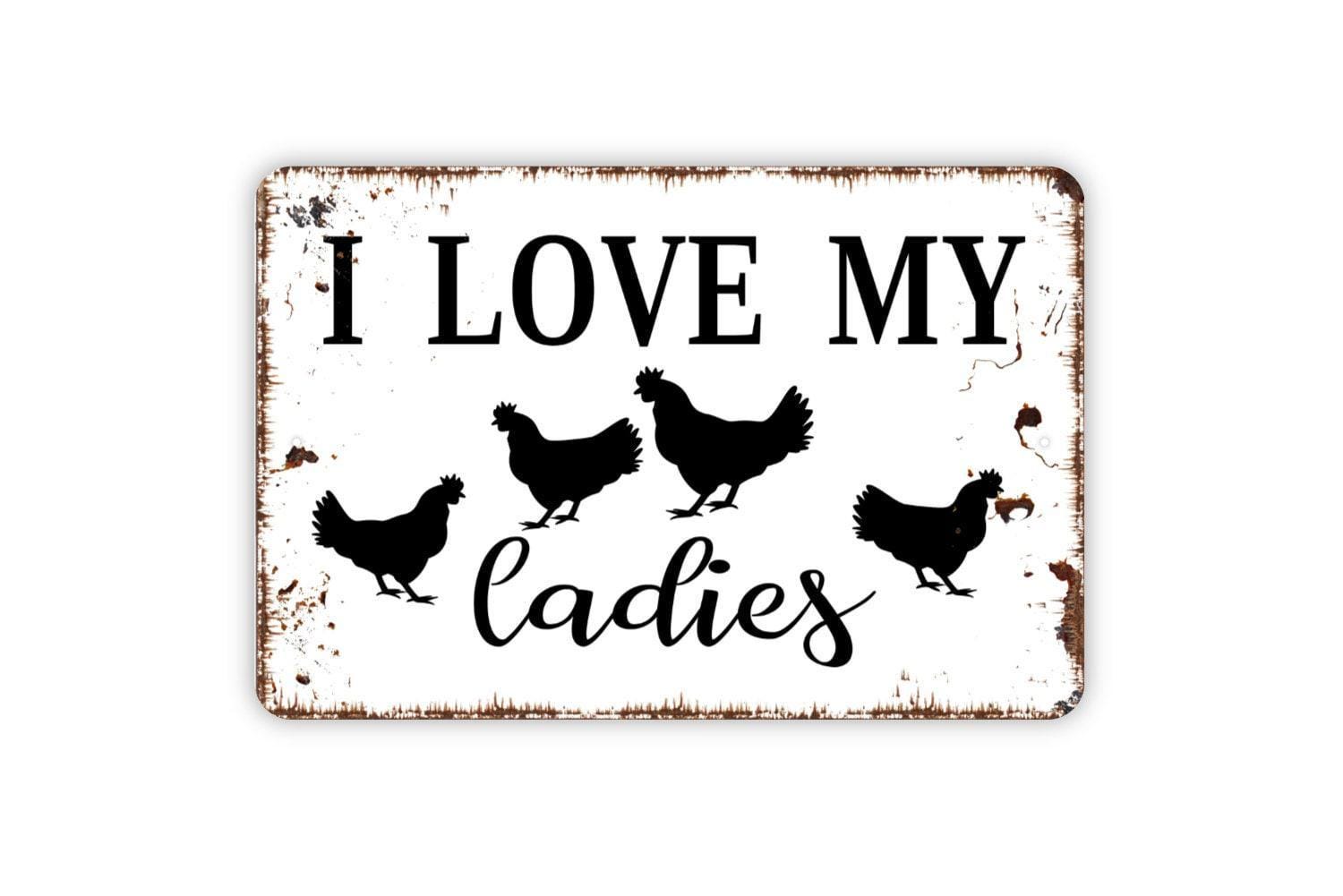 I Love My Ladies Sign with Chickens | Funny Farmhouse Metal Sign or Vinyl Sticker | Chicken Coop, Barn, Farm, or Kitchen Decor | Sizes