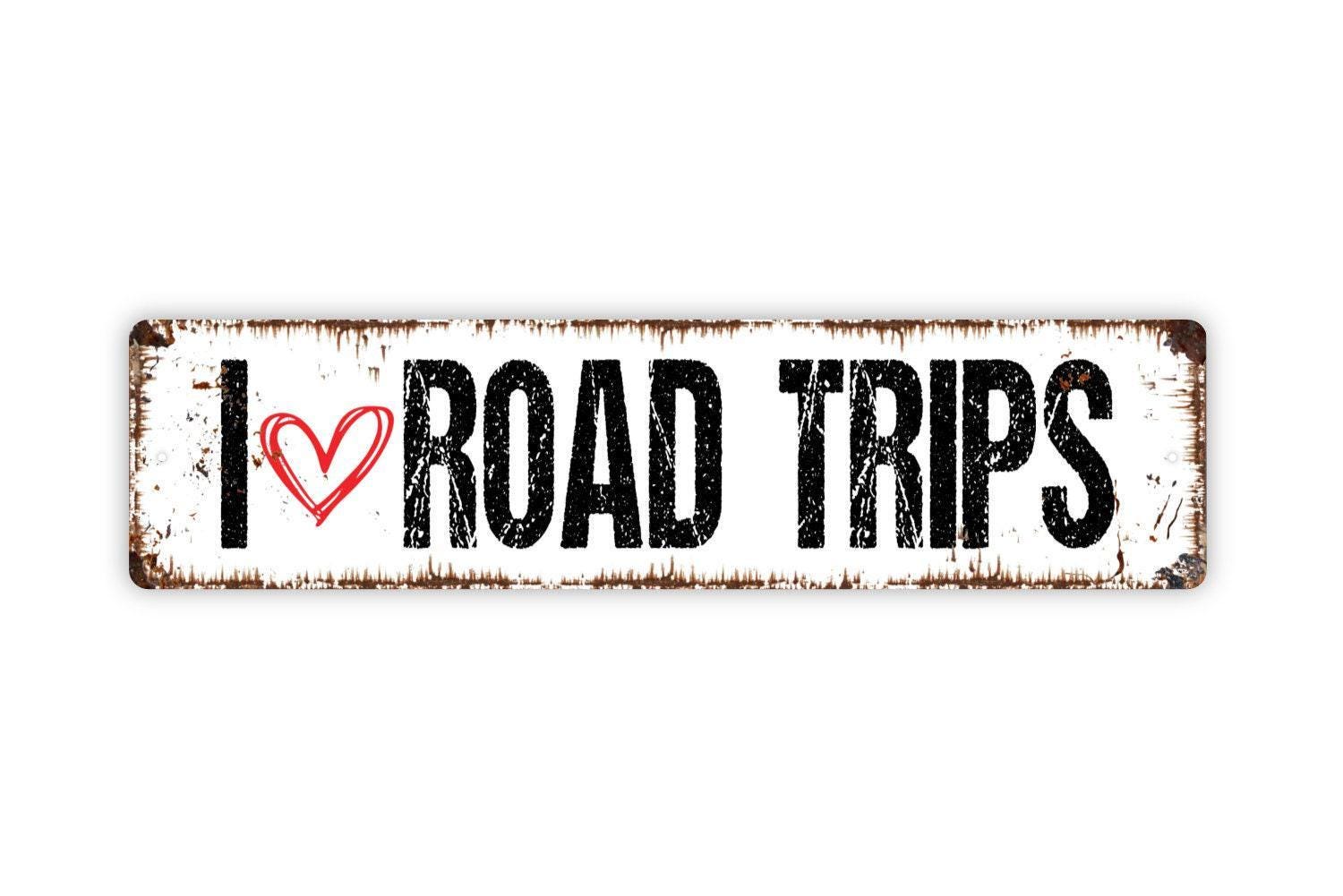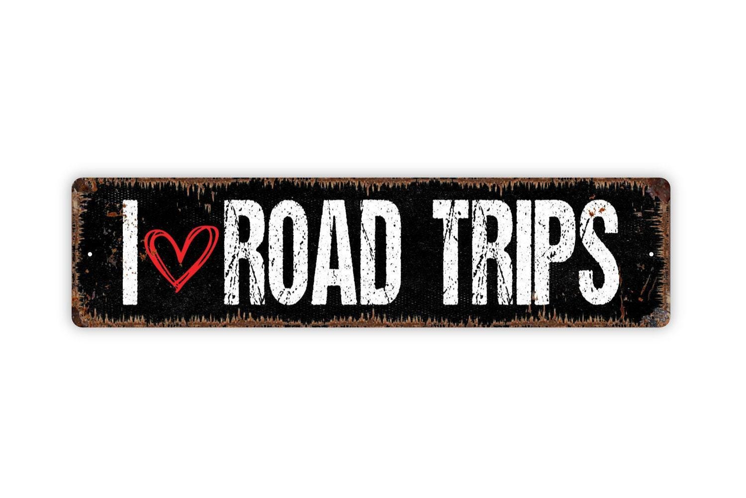 I Love Road Trips Sign - Travel Adventures Vinyl Sticker Or Street Metal Sign or Door Name Plate Plaque