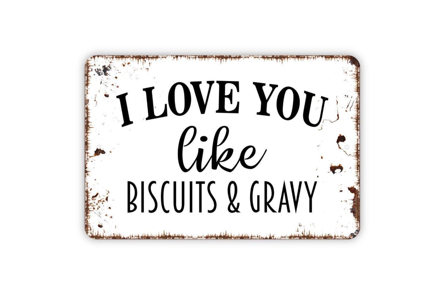 I Love You Like Biscuits And Gravy Sign | Funny Southern Kitchen Wall Decor | Rustic Farmhouse Country Quote Metal Sign or Vinyl Sticker