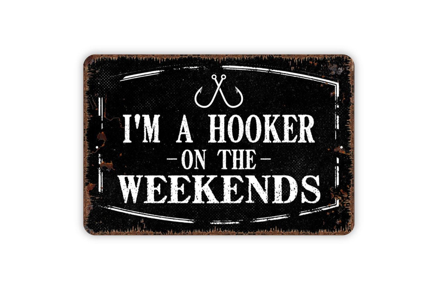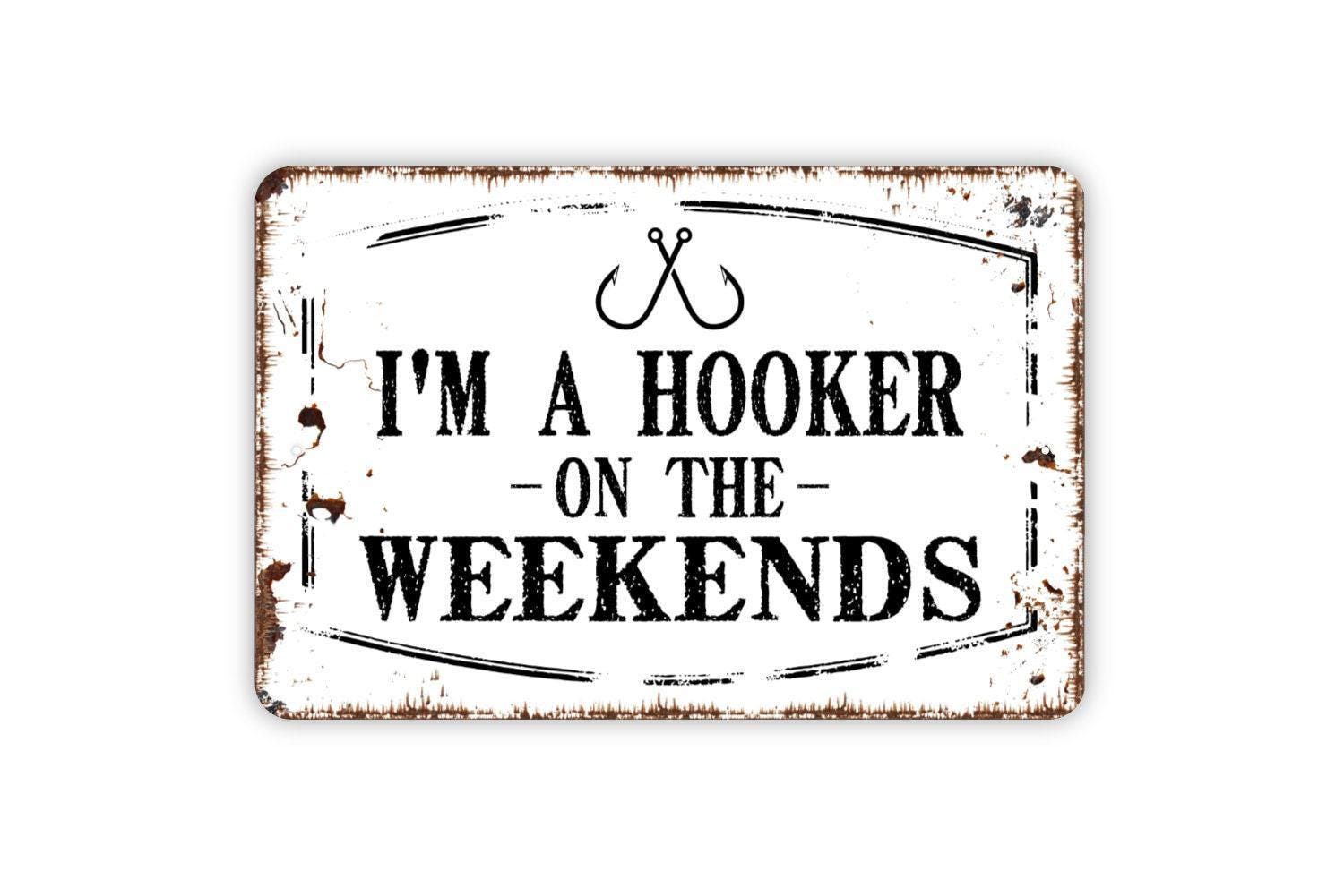 I’m a Hooker on the Weekends Sign | Funny Crochet Sign | Fishing Humor Wall Sign | Craft Room or Cabin Decor | Metal or Vinyl