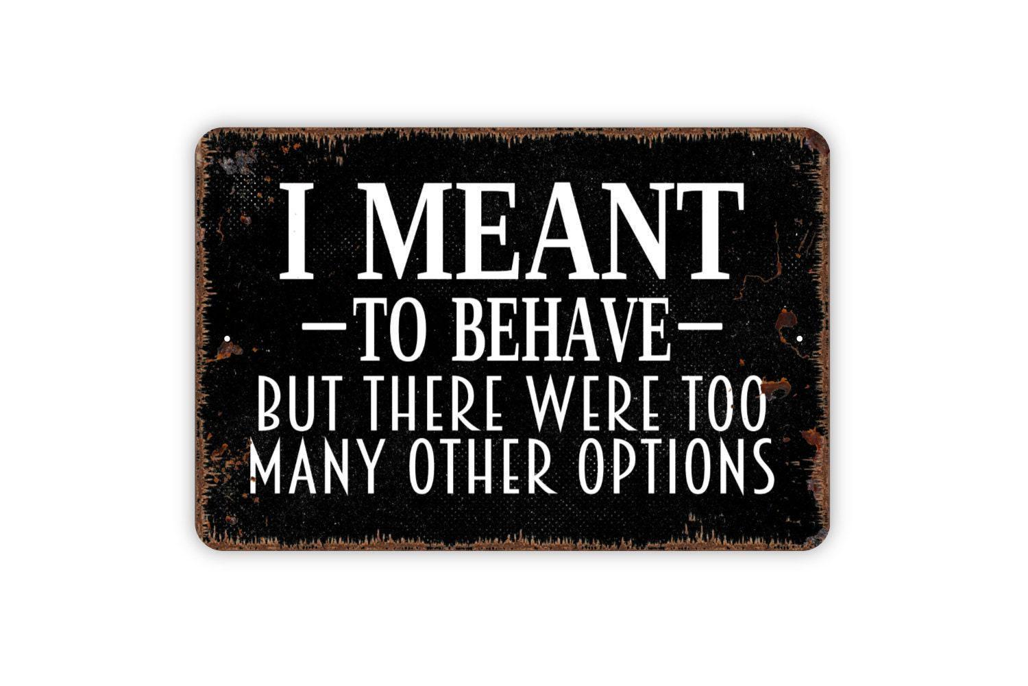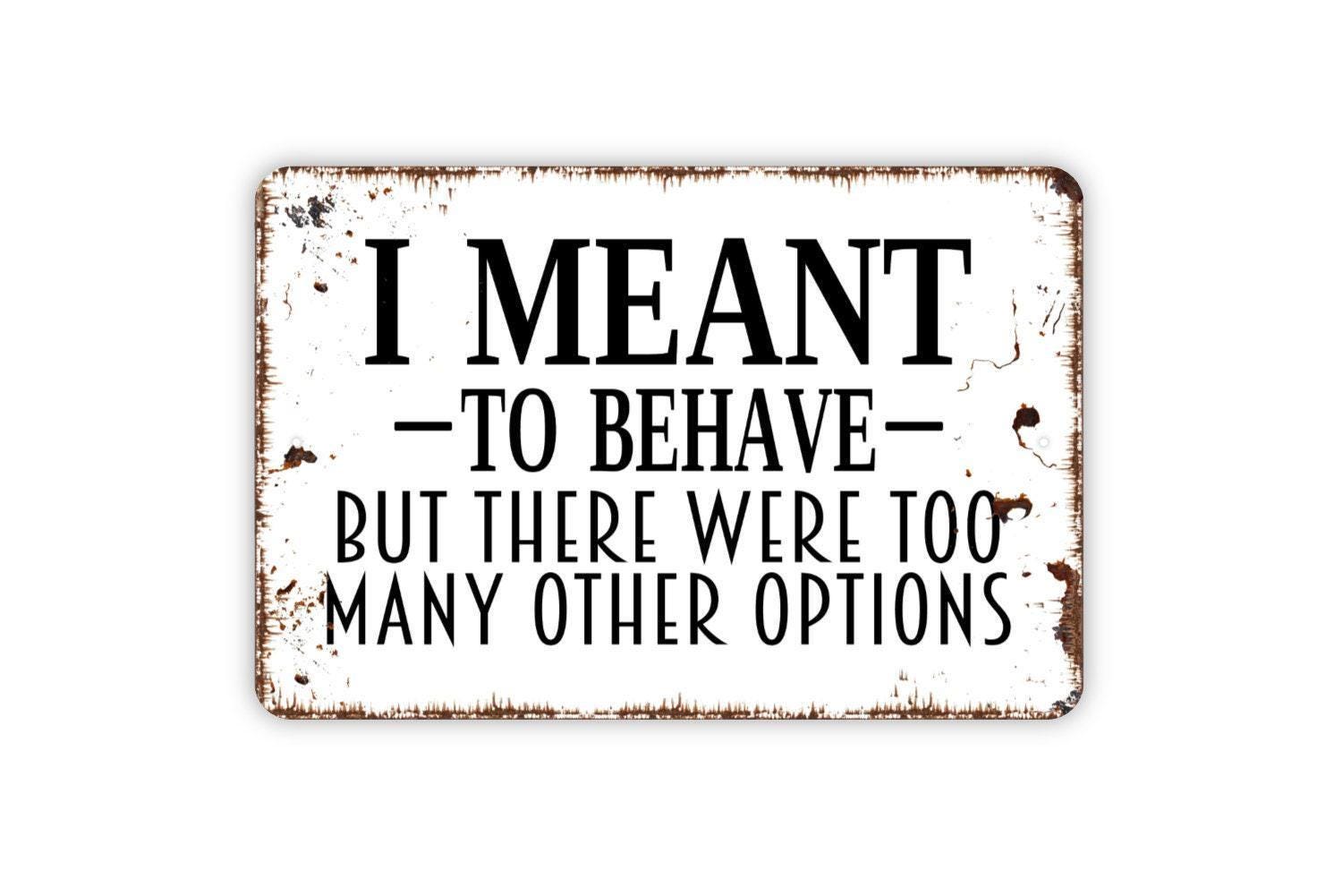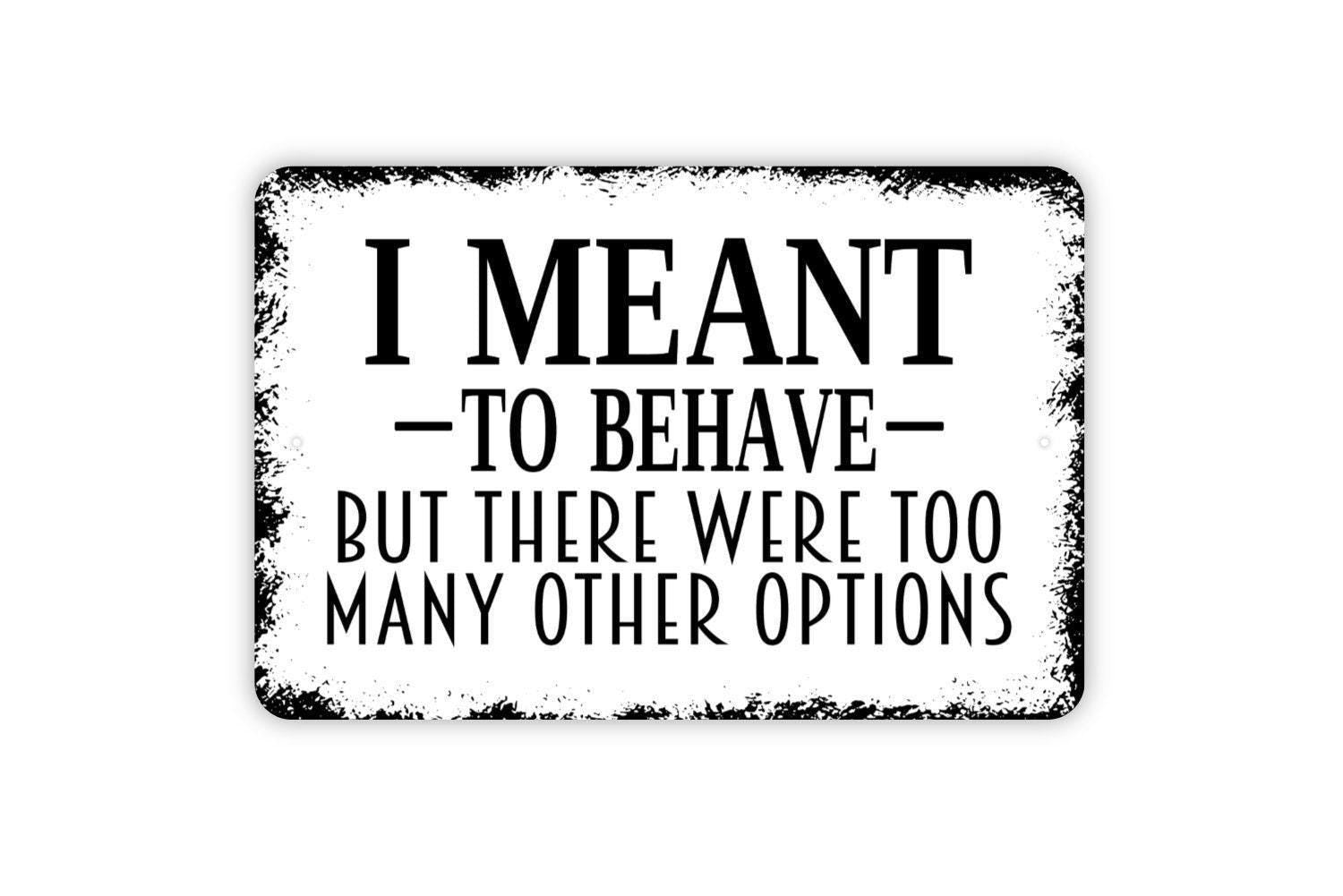 I Meant To Behave But There Were Too Many Other Options Sign | Funny Farmhouse Wall Decor | Rustic Humor Sign | Metal or Vinyl Sticker